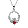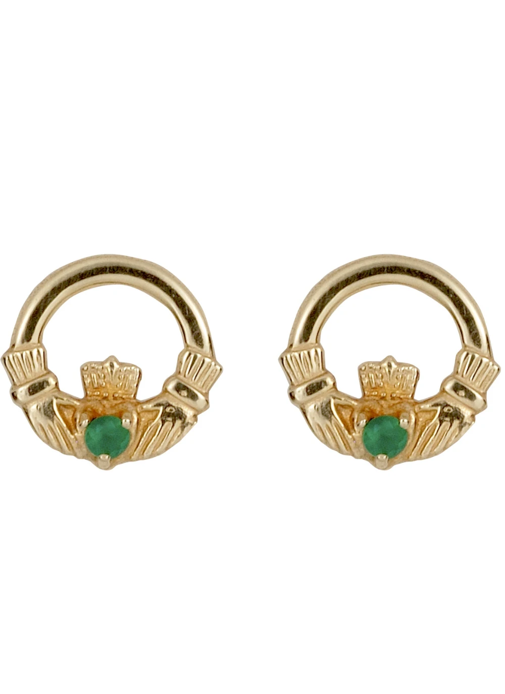 These 10ct gold earrings feature a stunning Claddagh design of two hands clasping a crowned heart – an iconic symbol of love, loyalty and friendship. These stunning earrings are perfected with an emerald diamond delicately at the center of each heart, held by the hands of the Claddagh. A unique gift for a loved one with Irish roots.