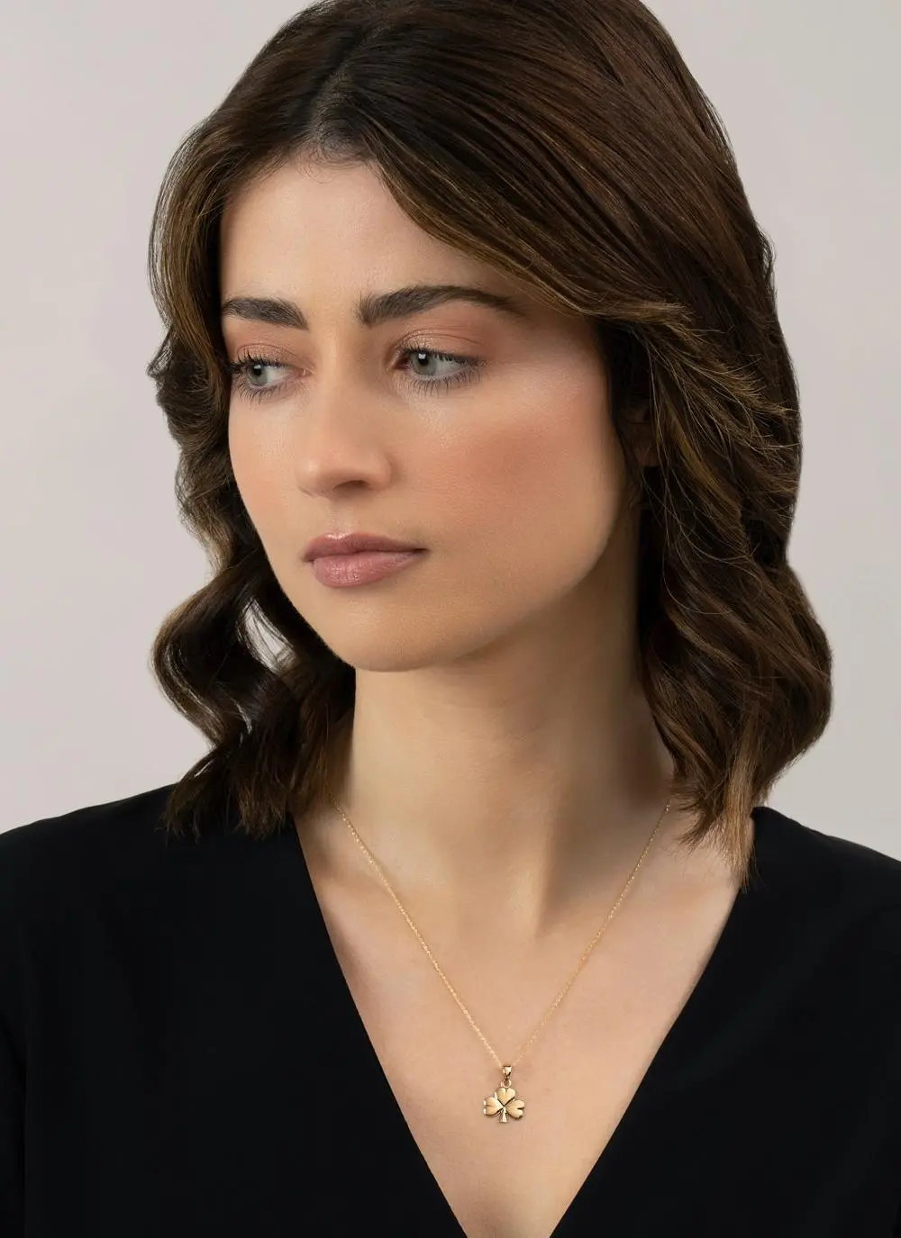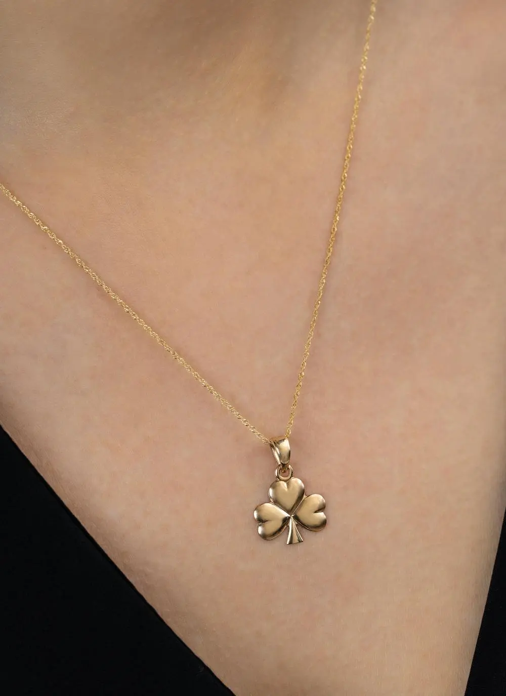 This classic 14ct Gold Shamrock Pendant adds Irish heritage to any outfit. The shamrock is worn to keep its wearer safe from harm and is believed to be a sign of good luck for those who wear it.