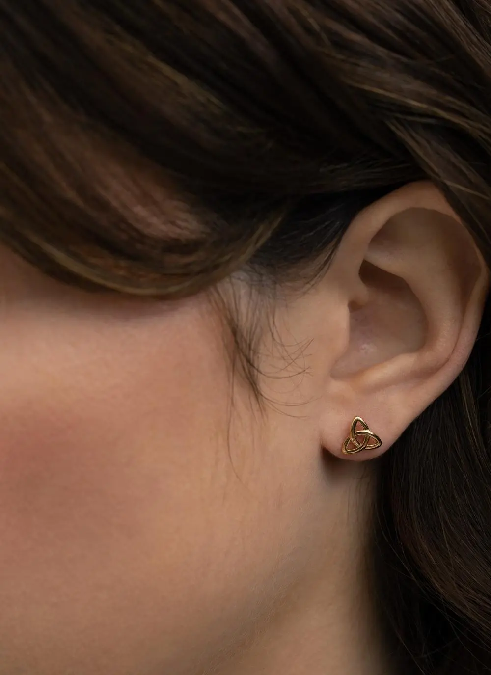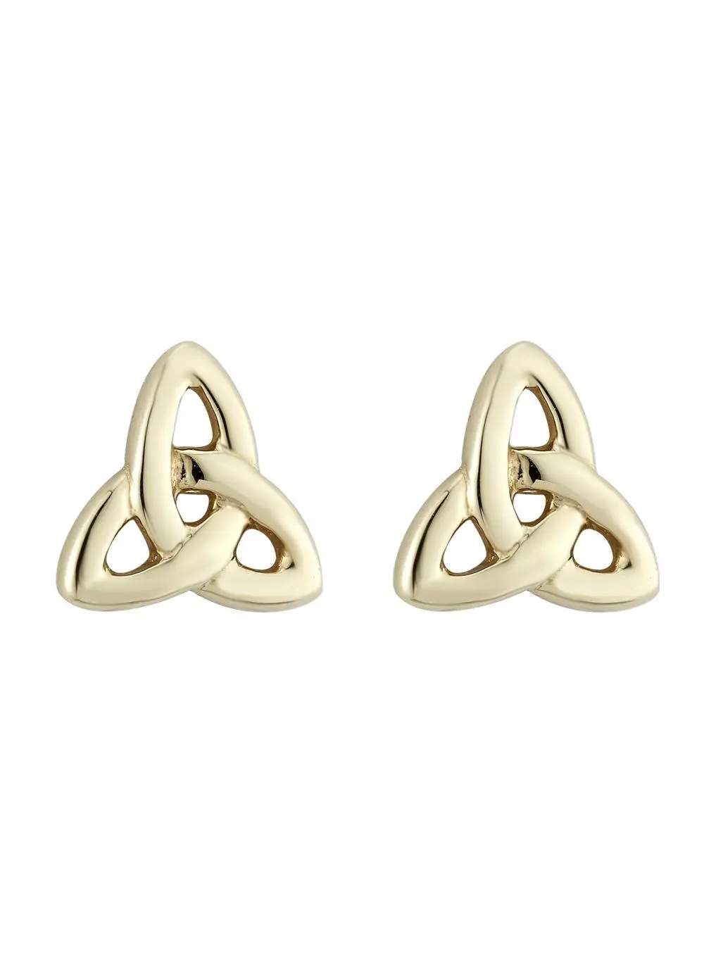 These stunning 14ct gold earrings boast the classical and elegant Trinity love knot. Three perfectly shaped, interlocking loops flow in and out of each other in endless beauty and grace. This intricate symbol is a sign of eternal life and never-ending love.