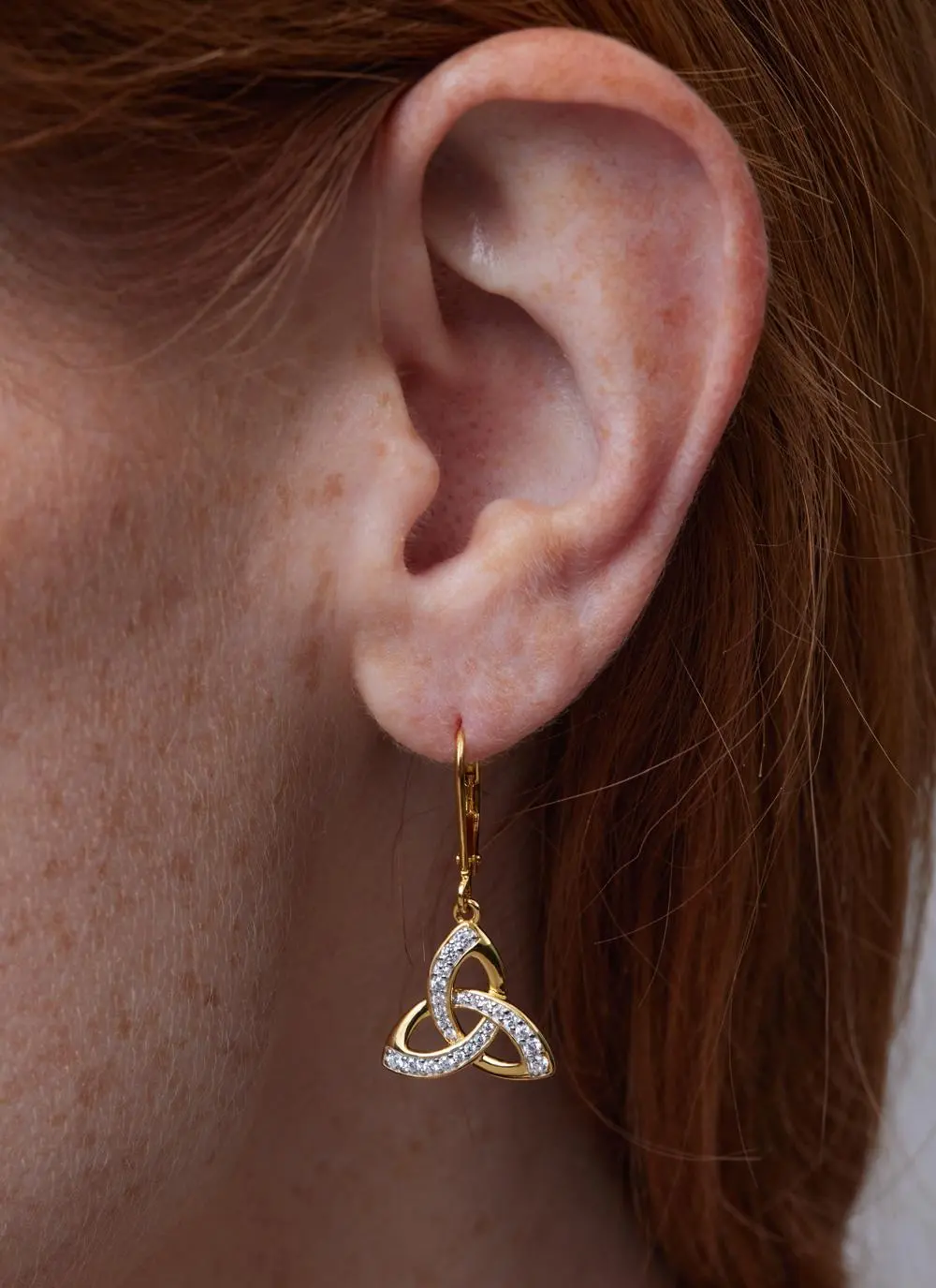 The Trinity Knot is an ancient Celtic symbol whose intersecting loops represent never-ending love. Encrusted with dazzling white cubic zirconia stones, these elegant Trinity Knot drop earrings are crafted in genuine 14-carat gold vermeil*. Complete the look with their matching pendant.
