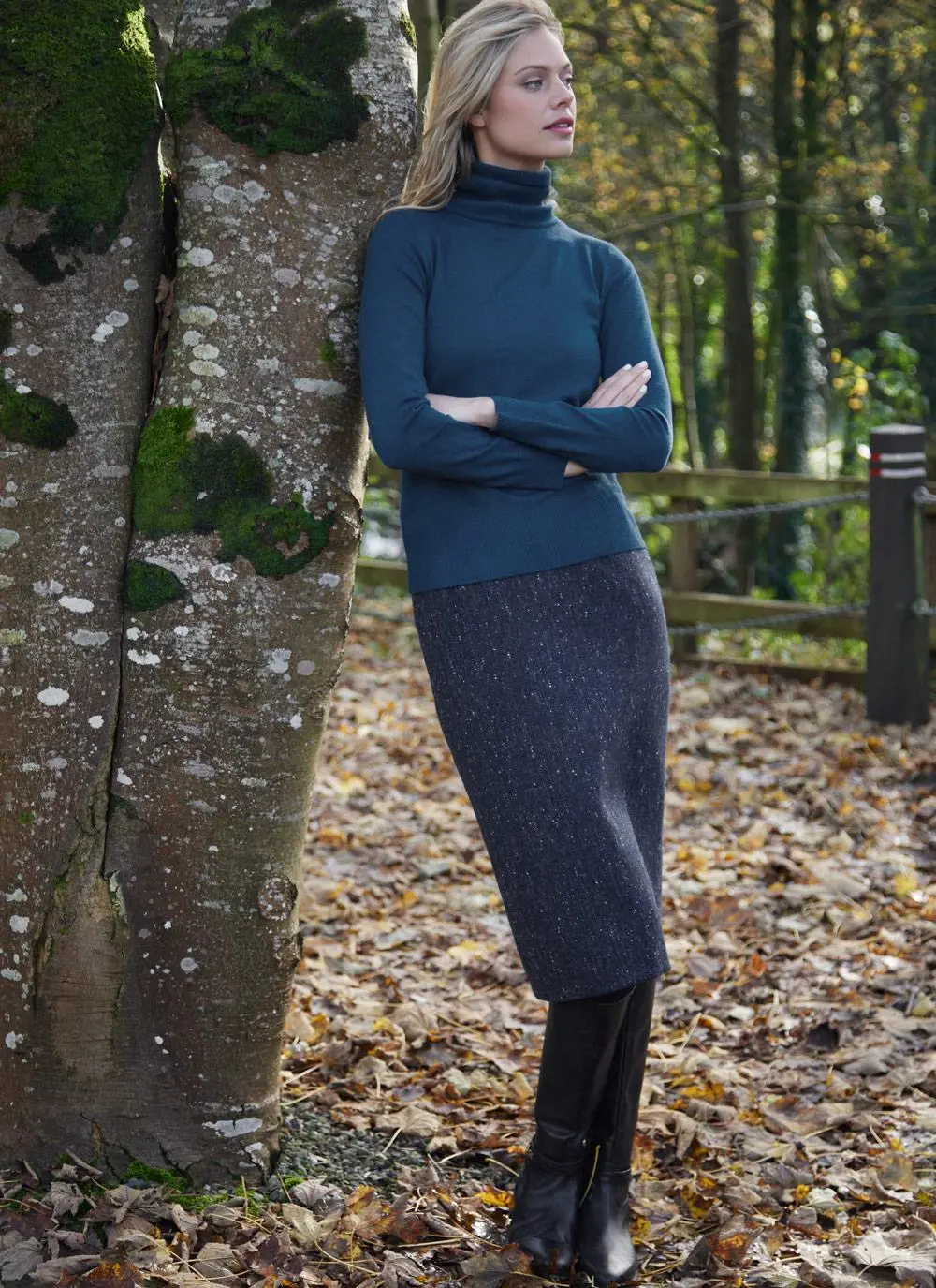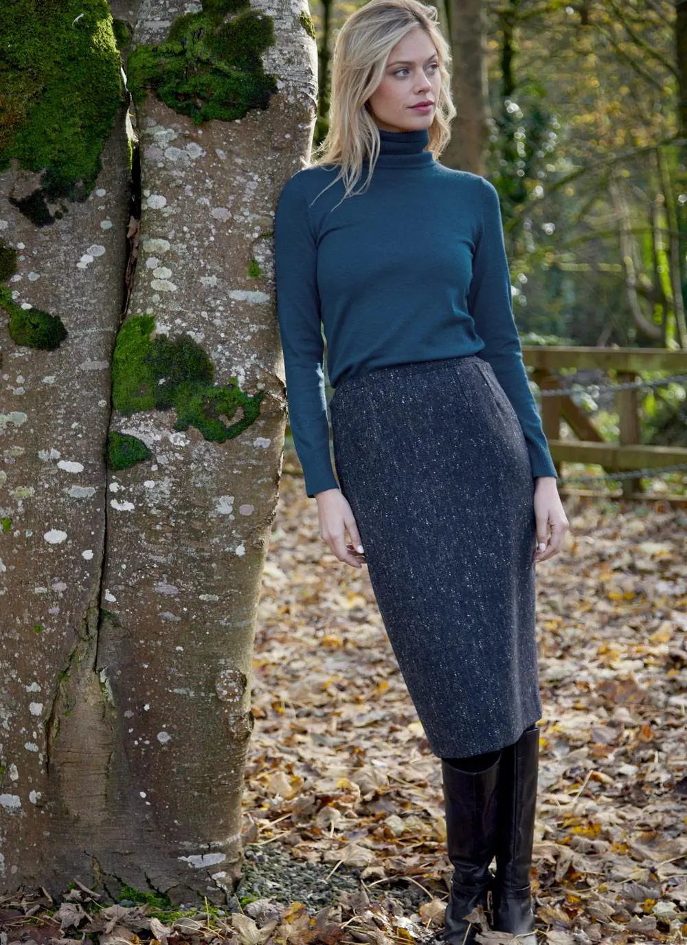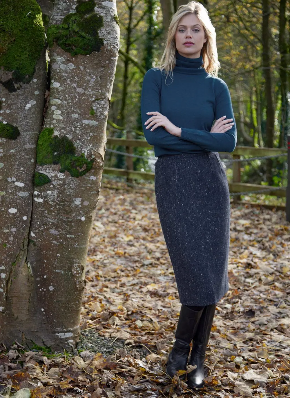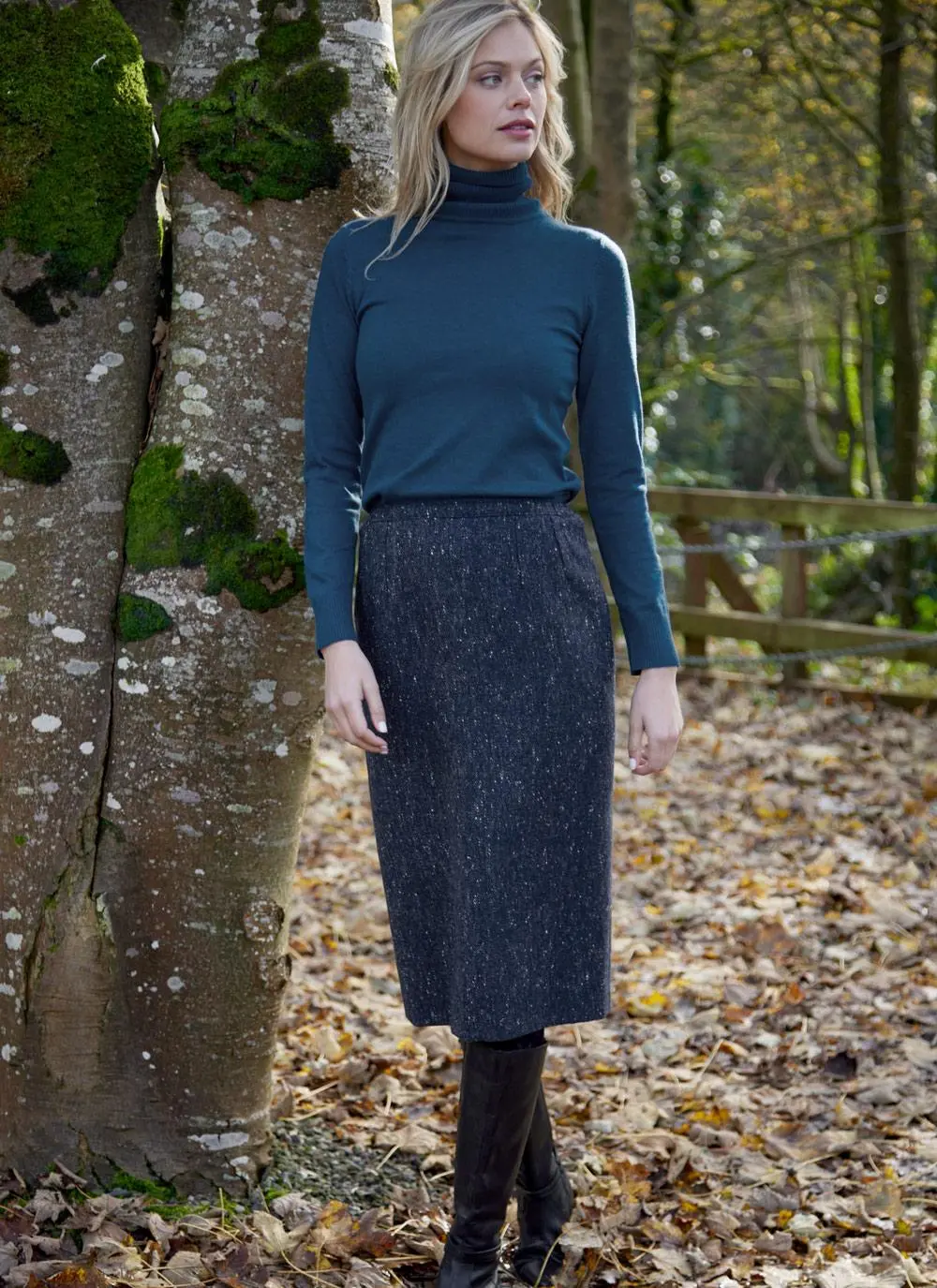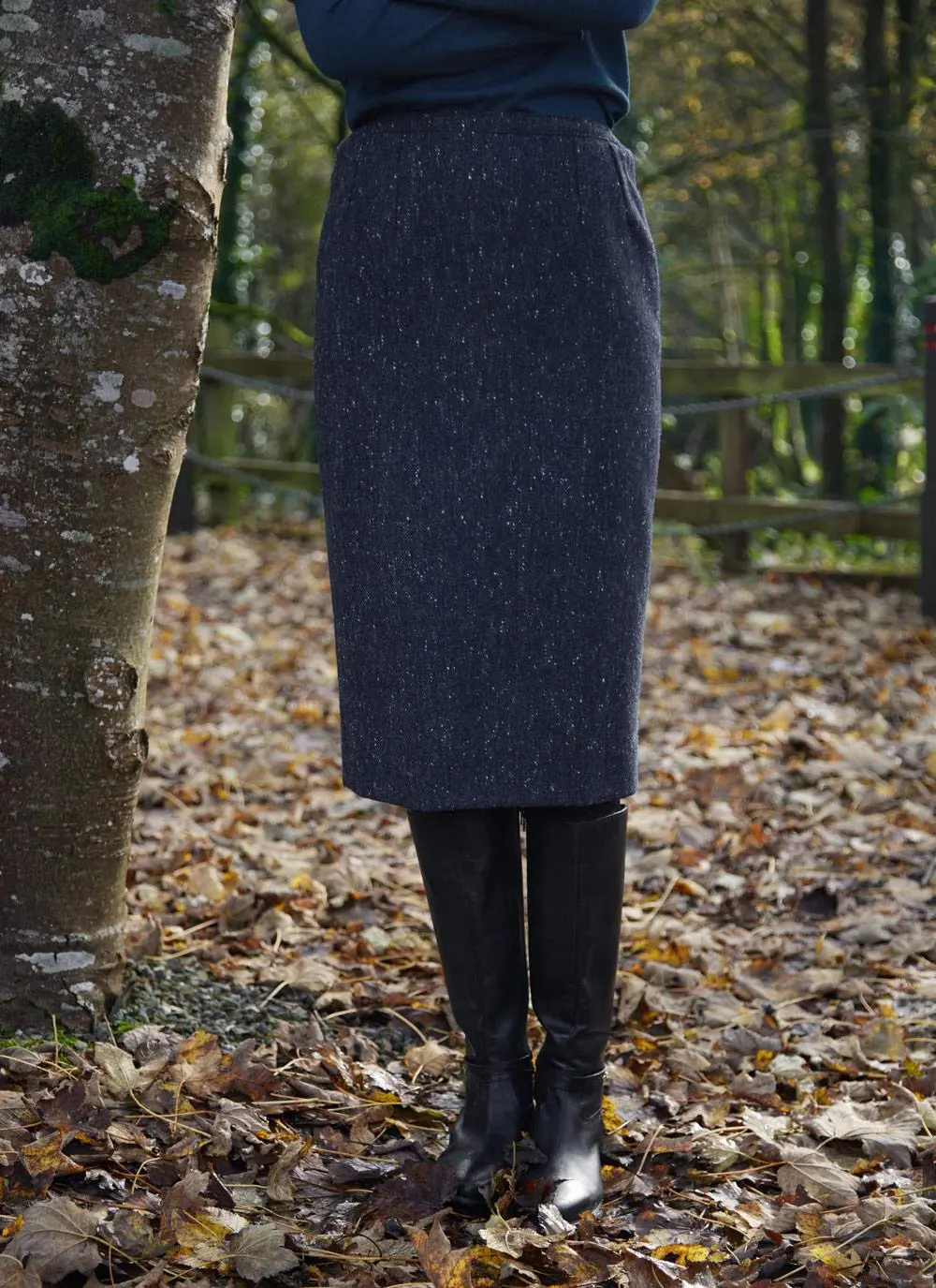 Using traditional Irish tweed, we are introducing the classic pencil skirt which embraces heritage chic for the modern woman. Woven in Ireland, this sophisticated tweed skirt is fully lined and has a timeless salt and pepper Donegal fleck finish. A small slit along the rear hem allows for easy movement, and it is neatly fastened with a concealed zip and single button.