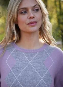 Classic meets contemporary with this crew neck sweater. It has a sophisticated four-colorway argyle pattern with a relaxed overall fit. It is knit with 100% extra fine merino wool and is completed with a ribbed hem, cuffs and neckline. This is the perfect light-weight sweater for any season.Â