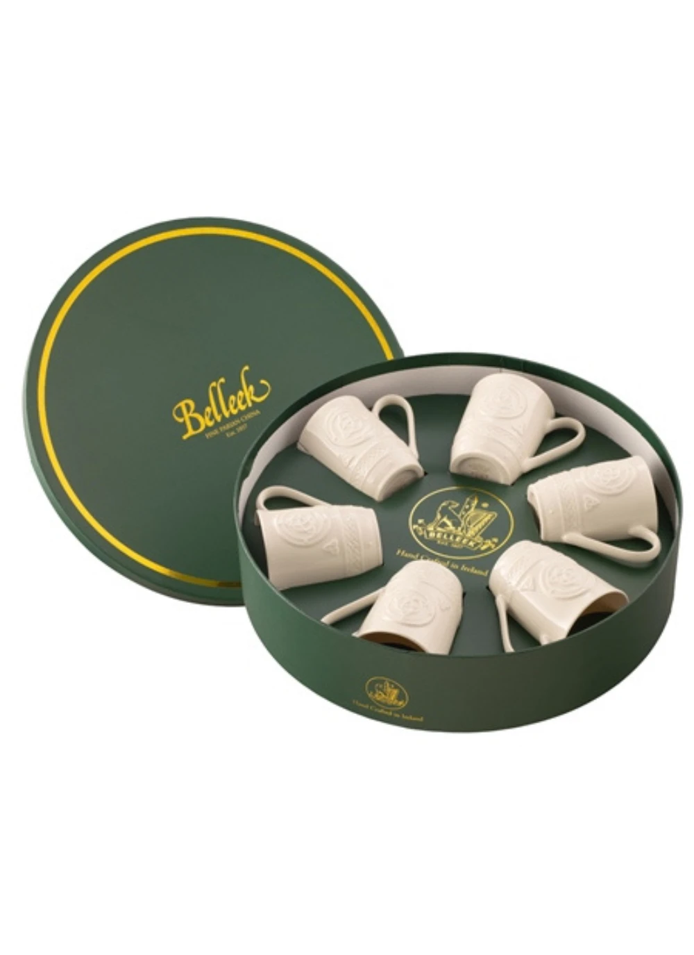 Belleek designers have incorporated different elements of Celtic design into these mugs by using intricate braiding and the Trinity Knot symbol. These Celtic mugs symbolize love, friendship, loyalty and eternity. When accompanied by a circle there is a greater emphasis on the continuous and wondrous circle of life. This set of 6 will make a lovely Irish gift that will last for many generations.