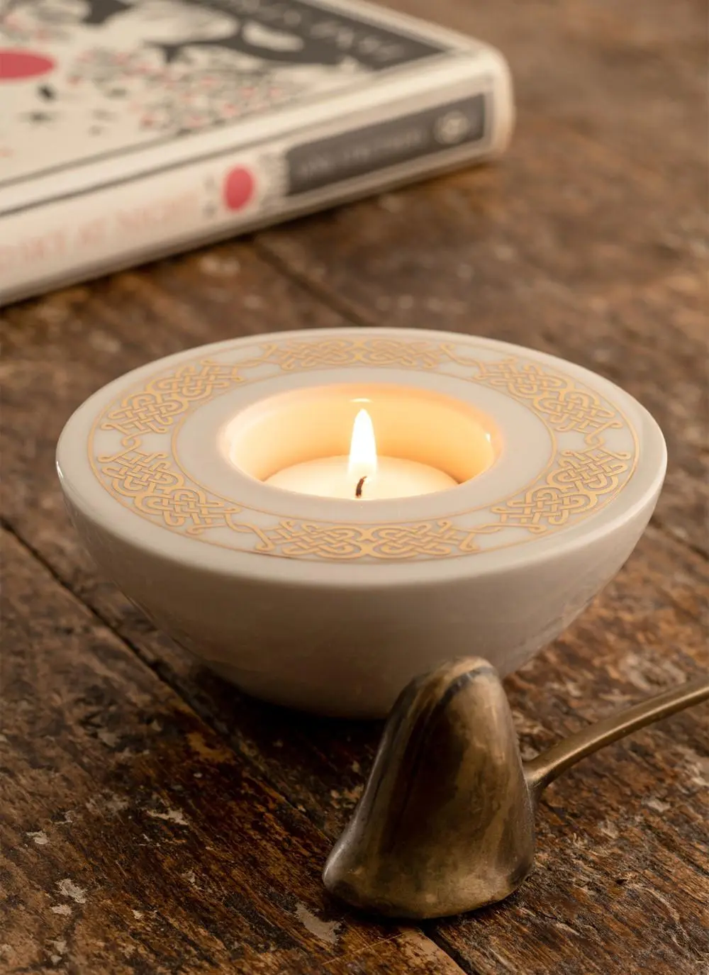 Add warmth and atmosphere to your living space with this beautiful tealight votive by Belleek. Handcrafted in Ireland from parian china, it features genuine gold Celtic knotwork which reflects the flame beautifully.
