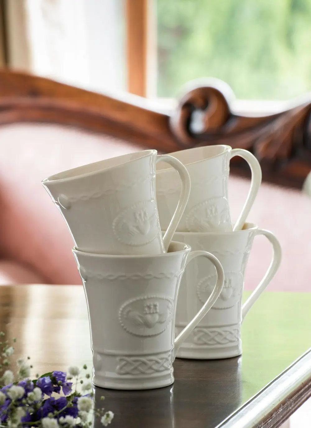 This set of 4 Irish Claddagh mugs from Belleek will make a great addition to your home. The claddagh’s distinctive design features two hands clasping a heart and usually surmounted by a crown. These elements symbolize the qualities of love (the heart), friendship (the hands) and loyalty (the crown). Â