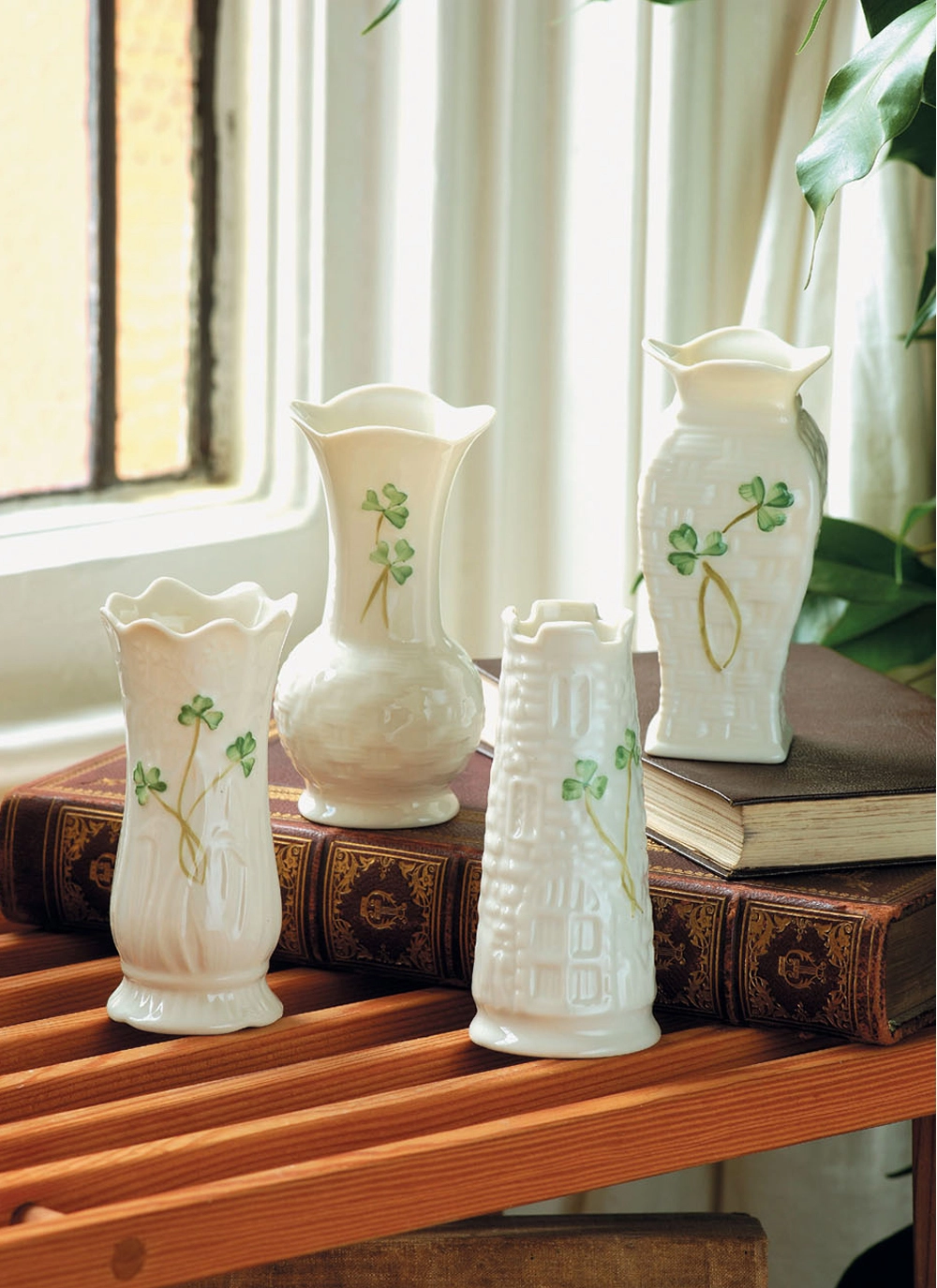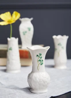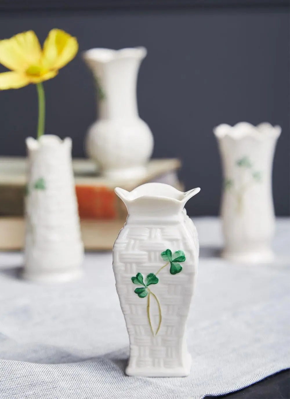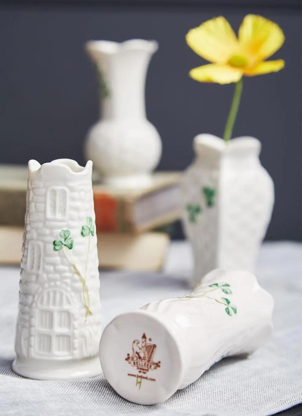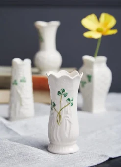 This adorable set from Belleek includes 4 Mini Bud Vases. Each vase has its own unique character and features delicately hand-painted shamrocks. A unique Irish gift for that special someone!