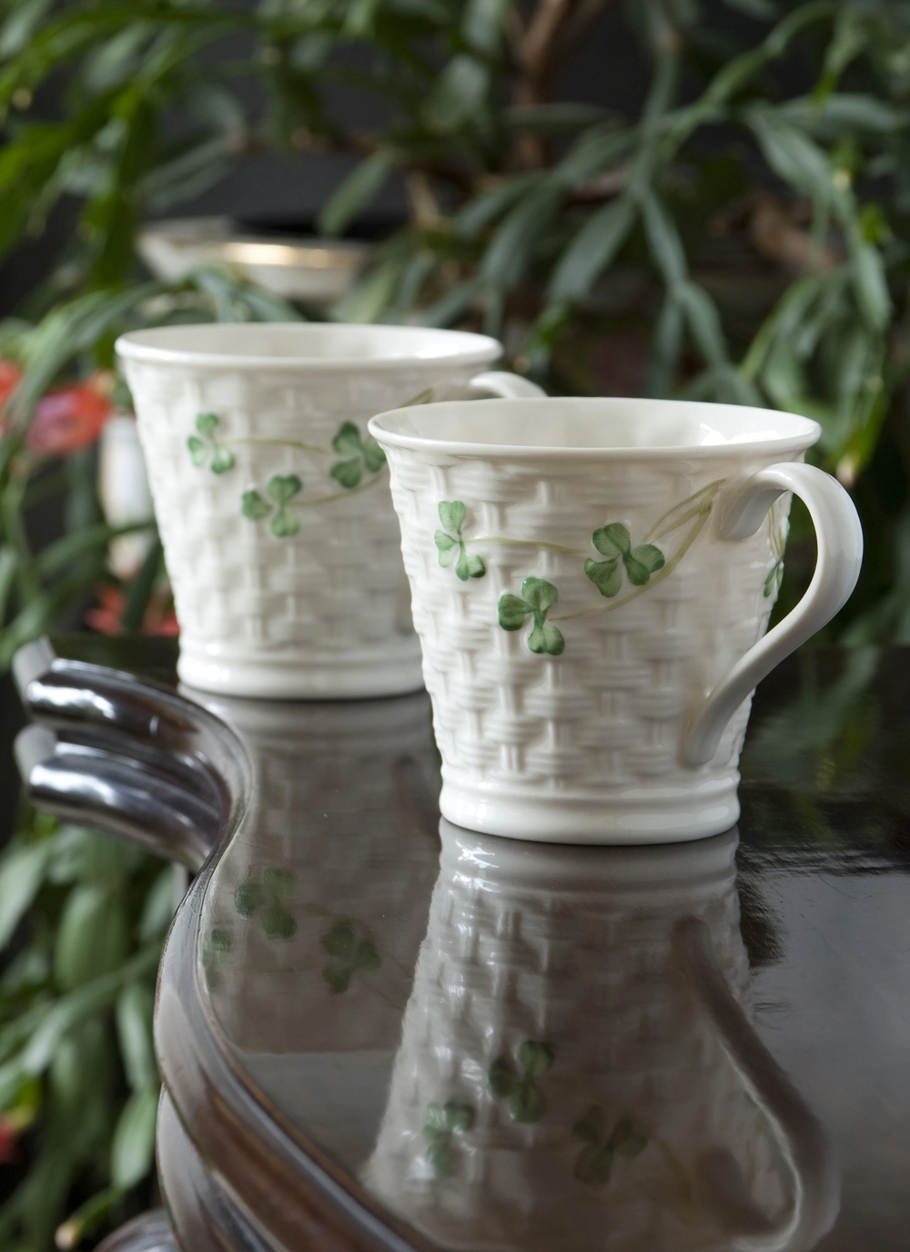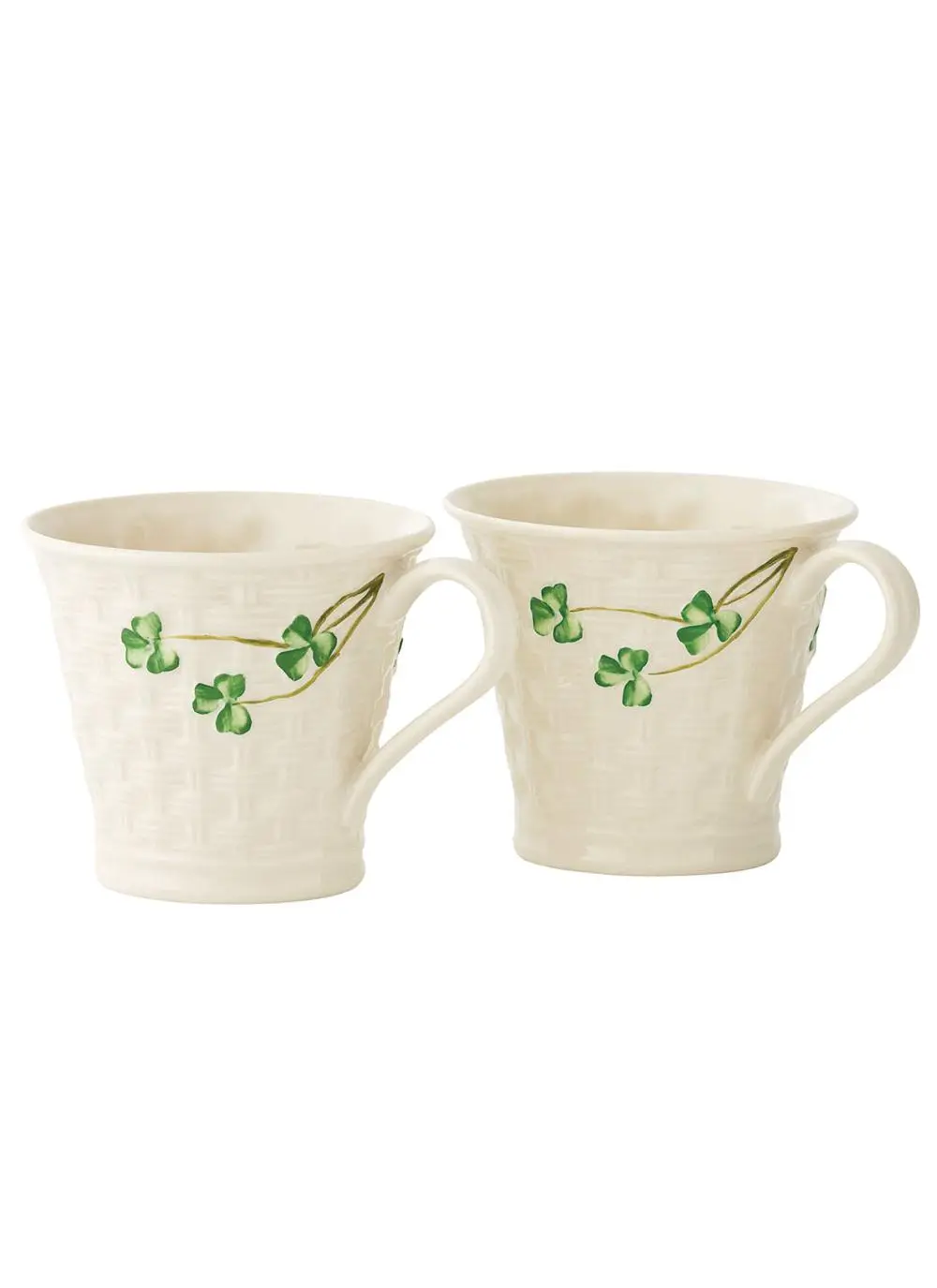 This set of 2 mugs makes a wonderful addition to your Belleek china collection. Embossed with an intricate basket weave design and hand-painted with Irish shamrocks. No two pieces from Belleek are ever the same. Crafted with techniques and materials passed down from generation to generation. This set makes the perfect Irish gift for a loved one.
