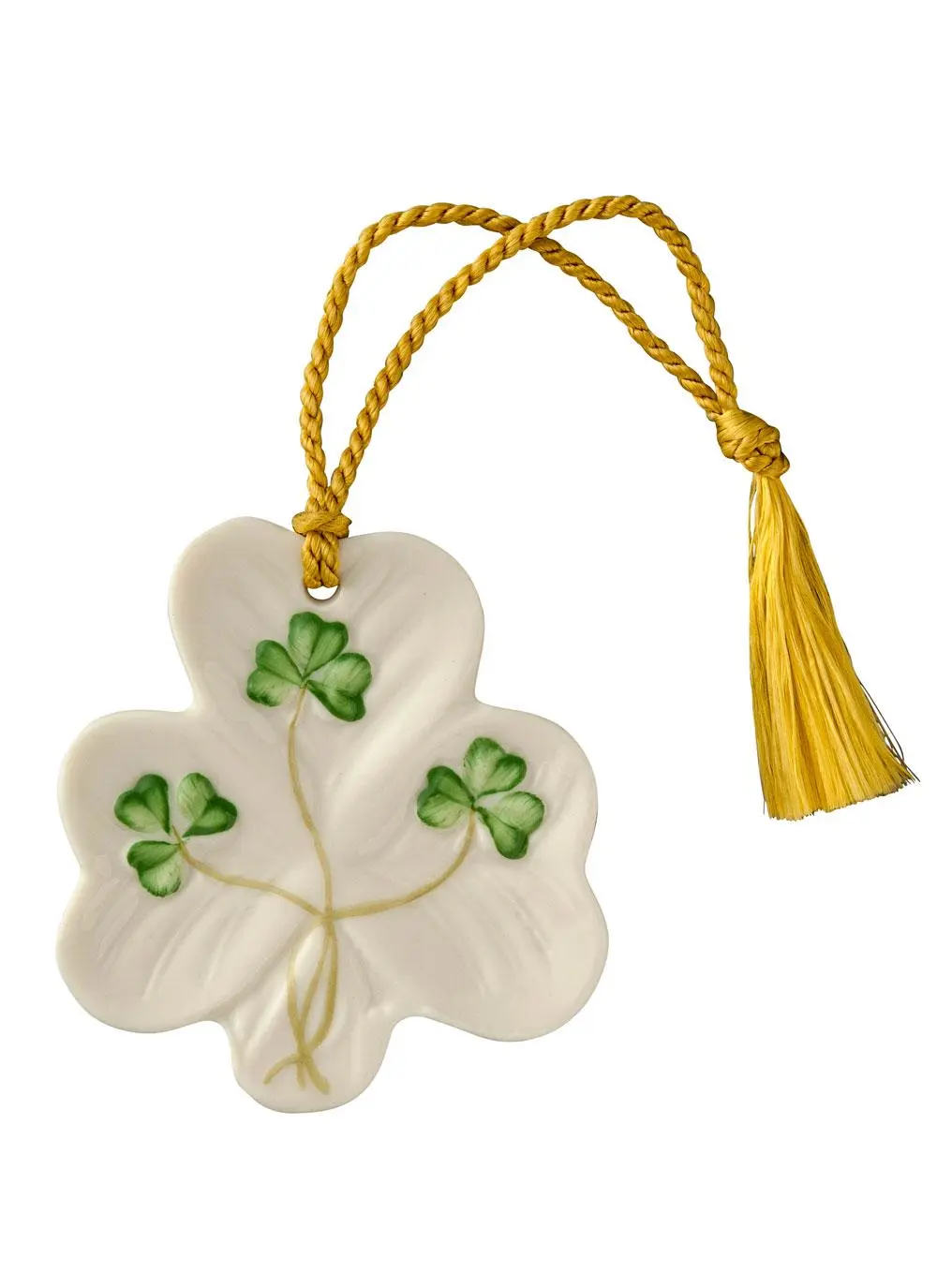 This beautifully made Irish shamrock shaped decoration has been crafted in Ireland by Belleek. It features three delicately hand-painted shamrocks and would make a wonderful addition to your tree this Christmas. An ideal Irish gift.