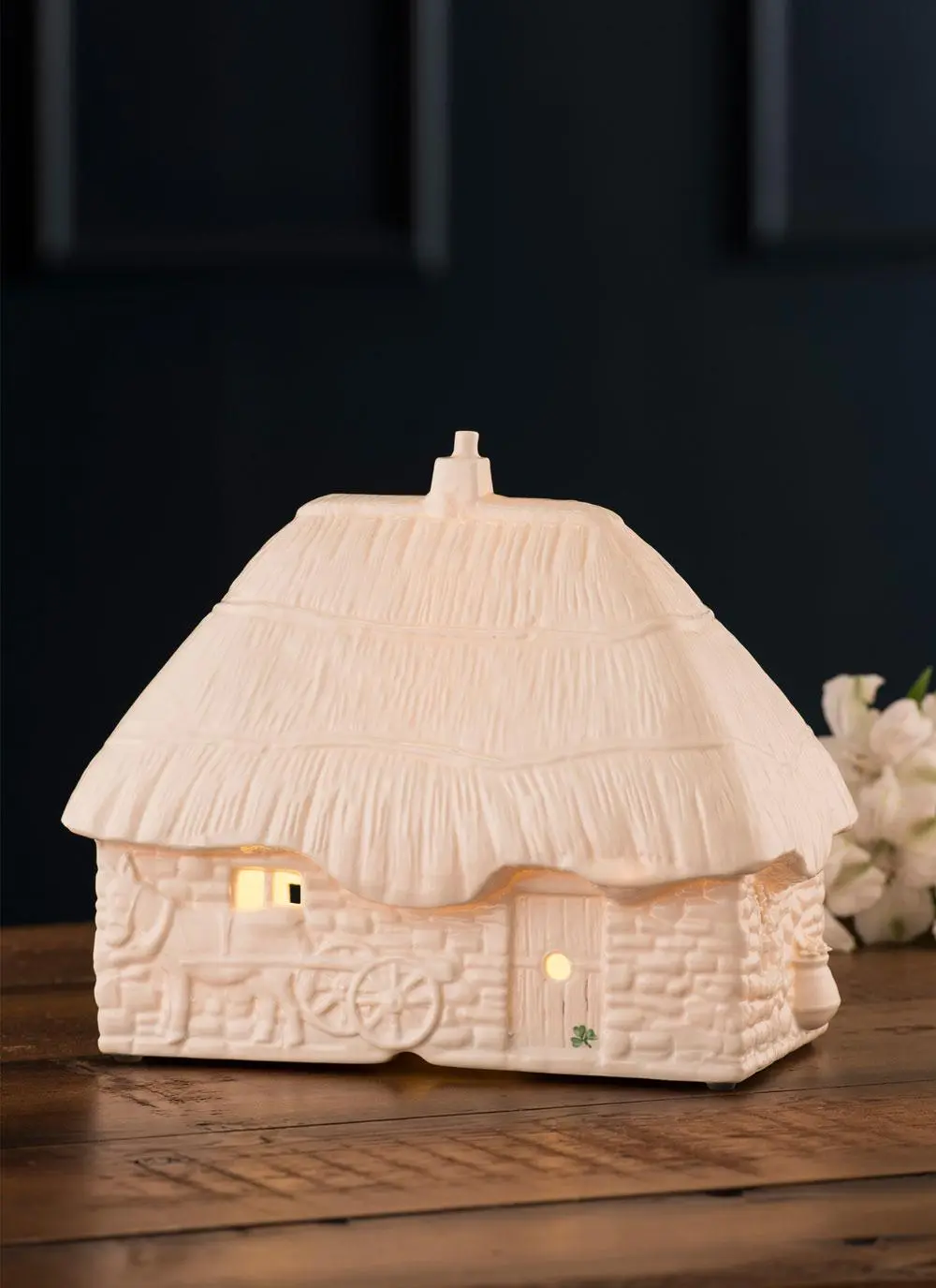 Reminiscent of an old thatch cottage found in rural Ireland, this beautiful luminaire from Belleek is perfect for adding a touch of the Emerald Isle to your room. With a warm, welcoming glow to light up your home, this luminaire has been handcrafted in Ireland and hand-painted with a delicate shamrock on the back door of the cottage.