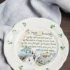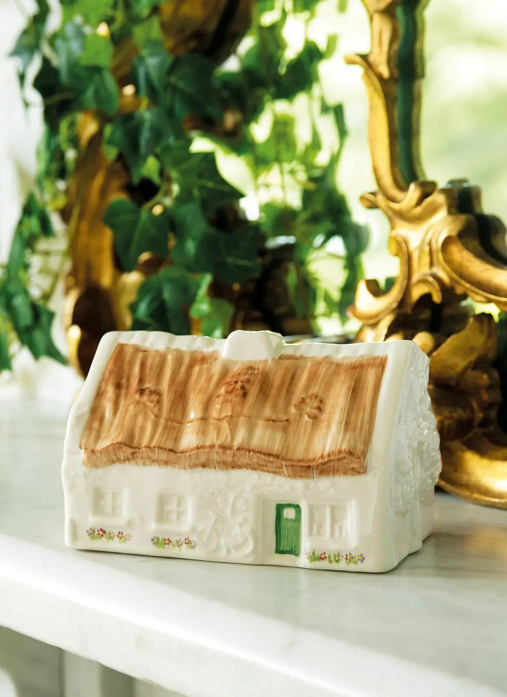 A beautiful votive from Belleek, inspired by “The Quiet Man” film. This Irish favorite movie from the 1950s, starred John Wayne and Maureen O’Hara. It tells the tale of an American boxer who returns to Ireland, the place where he was born, and there he falls in love with a beautiful Irish girl. The Quiet Man Cottage is inspired by this story and has been hand-painted with detailed flowers and a thatched roof. Just add a night light.
