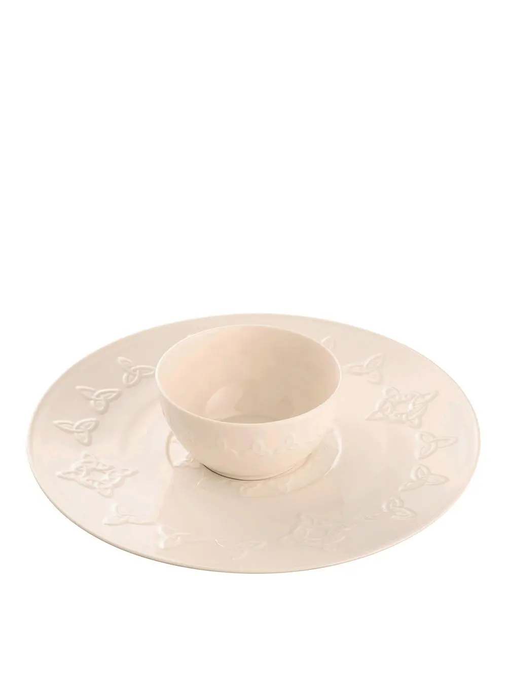 If you like entertaining guests at home, you will love this fine china chip and dip set by Belleek. This set, which includes a large platter and matching bowl, is ideal for serving up your favorite appetizers. Each piece features a trinity knot motif, which is an ancient Celtic symbol representing the spirit, mind and soul. A thoughtful Irish gift for the host/hostess in your life!
