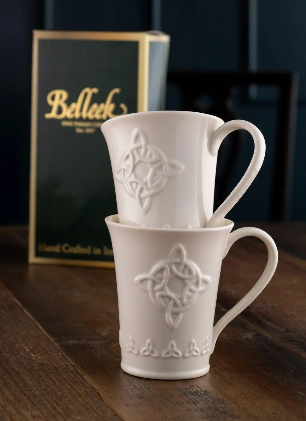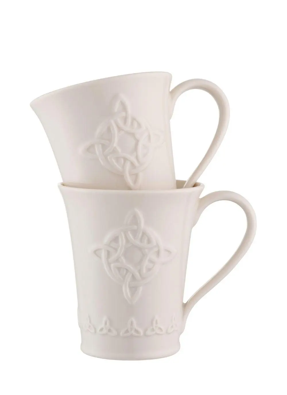 The ideal mugs for sharing coffee with family or friends. These Belleek mugs have been skillfully handcrafted in Ireland from fine Parian china, and are embossed with Celtic trinity knots, an intricate symbol of eternal life and never-ending love.
