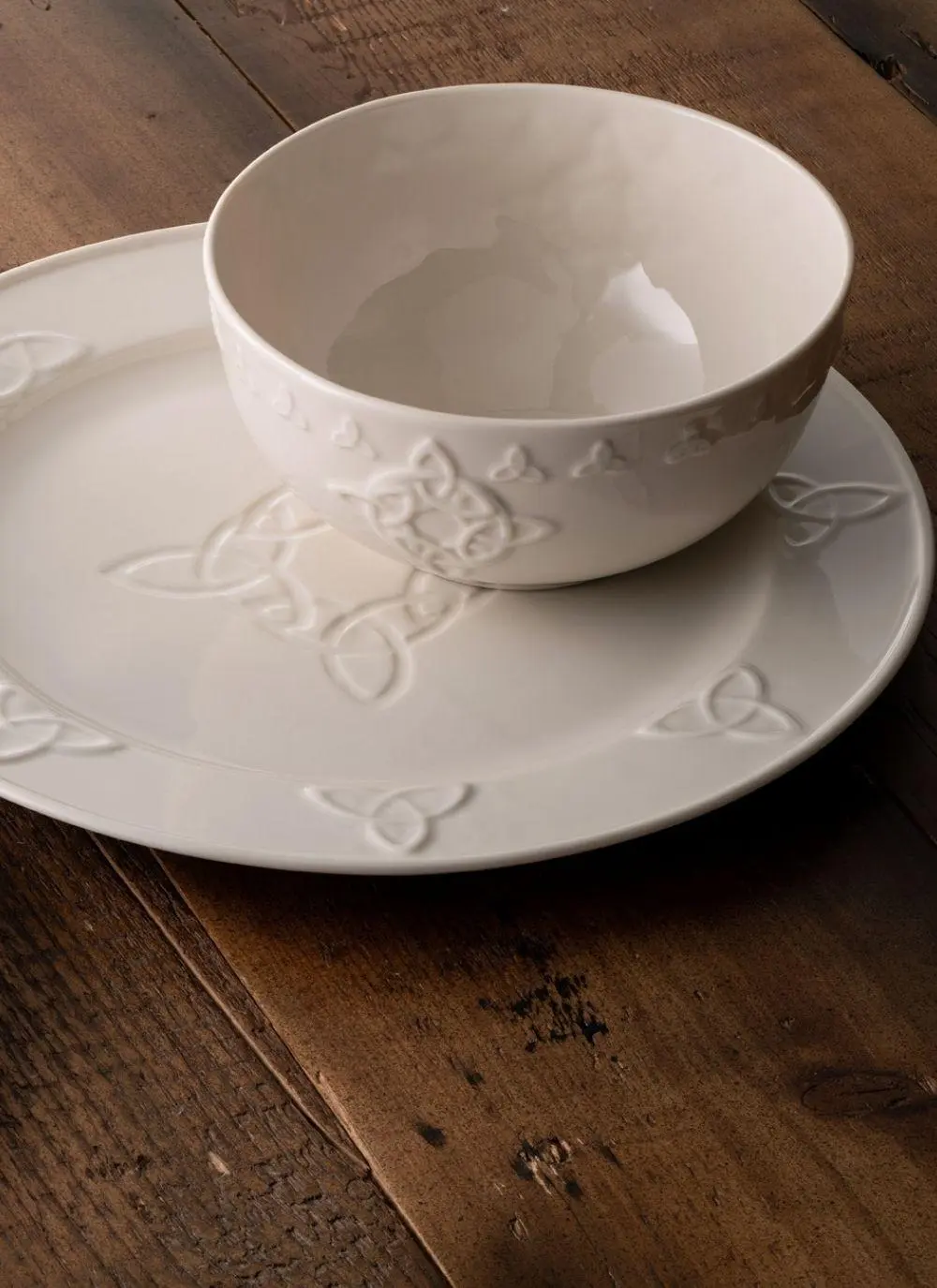Perfect for everyday use, or save for those special occasions. These plates, from Belleek, have been skillfully handcrafted in Ireland from fine Parian China and embossed with Celtic Trinity Knots. The Trinity Knot is an intricate symbol of eternal life and never-ending love as it has no beginning and no end.