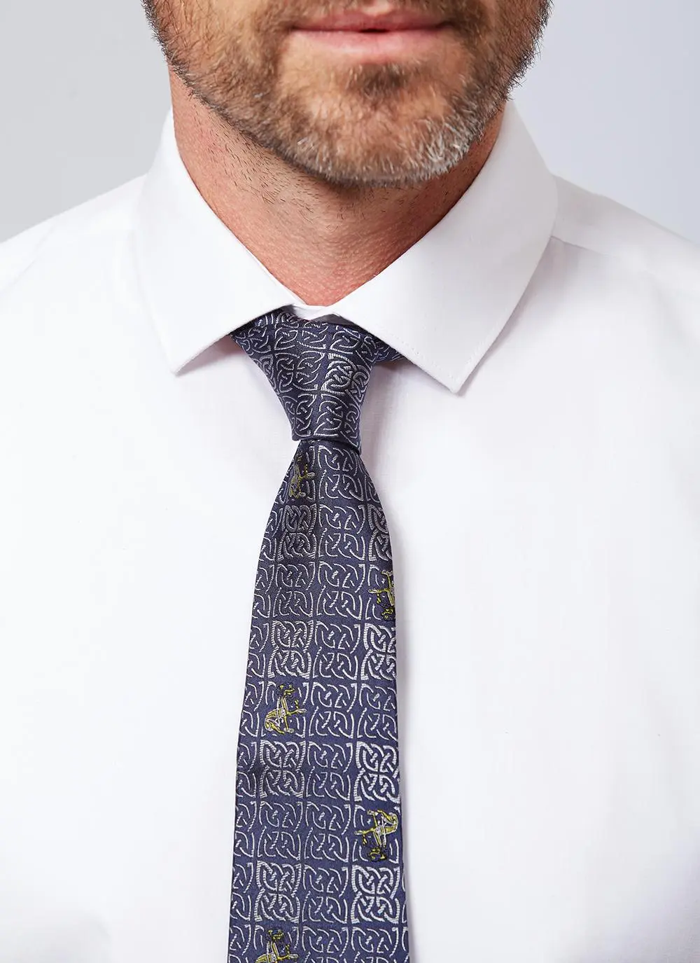 Designed in Ireland by Patrick Francis using the finest quality silk. The emblem of the Celtic Knot and a man’s best friend (his dog) is taken from The Book of Kells and is woven into each silk tie. It is perfect Irish gift.Â