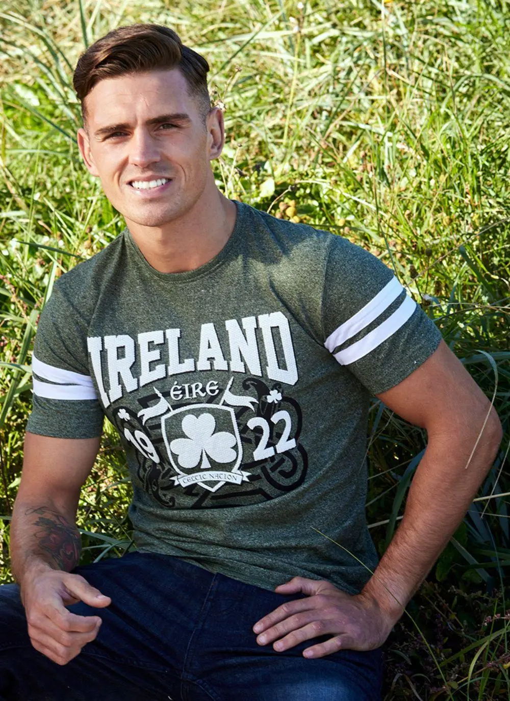 Wear your Irish pride with this graphic moss green cotton t-shirt. It features a Celtic nation motif with a shamrock crest, as well as tape short sleeves for a relaxed, sporty look. Makes the perfect gift for a loved one with Irish roots.