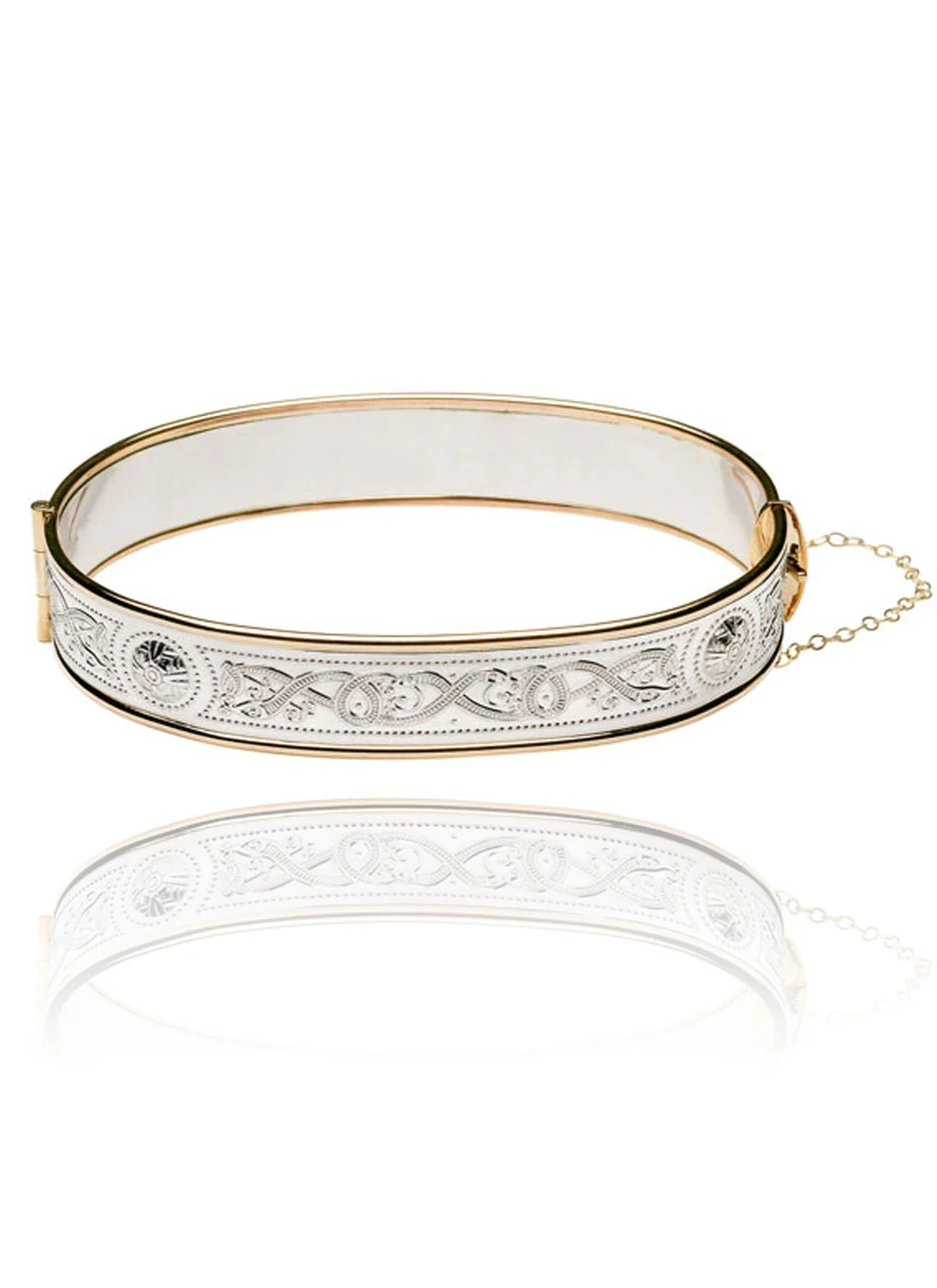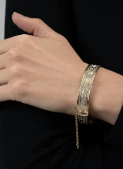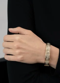 The gold filigree band and shield decorations found on the Ardagh Chalice forms the basis of the intricate designs featured on this stunning Celtic Warrior Bracelet. The Ardagh Chalice is one of the greatest treasures of Celtic Ireland, dating back to the 8th Century it is an exquisite example of early craftsmanship and design.