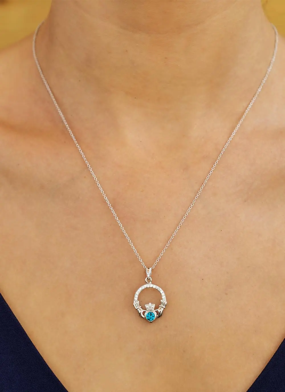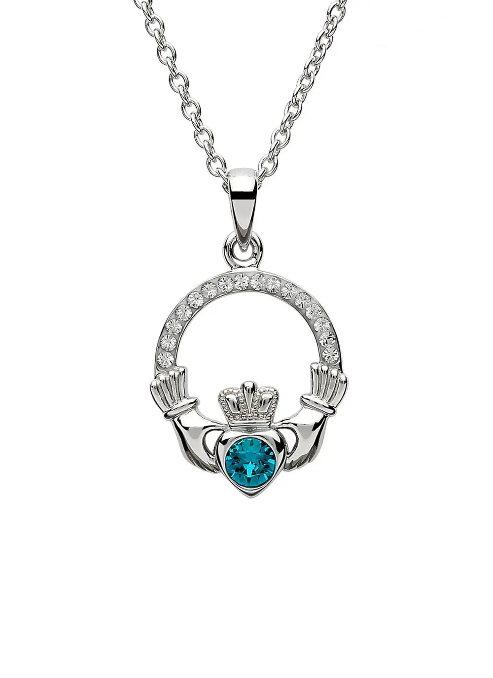 The Irish Claddagh has long been associated with friendship, loyalty and everlasting love. Be a part of the Claddagh story with this sterling silver birthstone pendant. Specially designed for those born in December, majestic blue topaz brings the wearer wisdom and understanding.