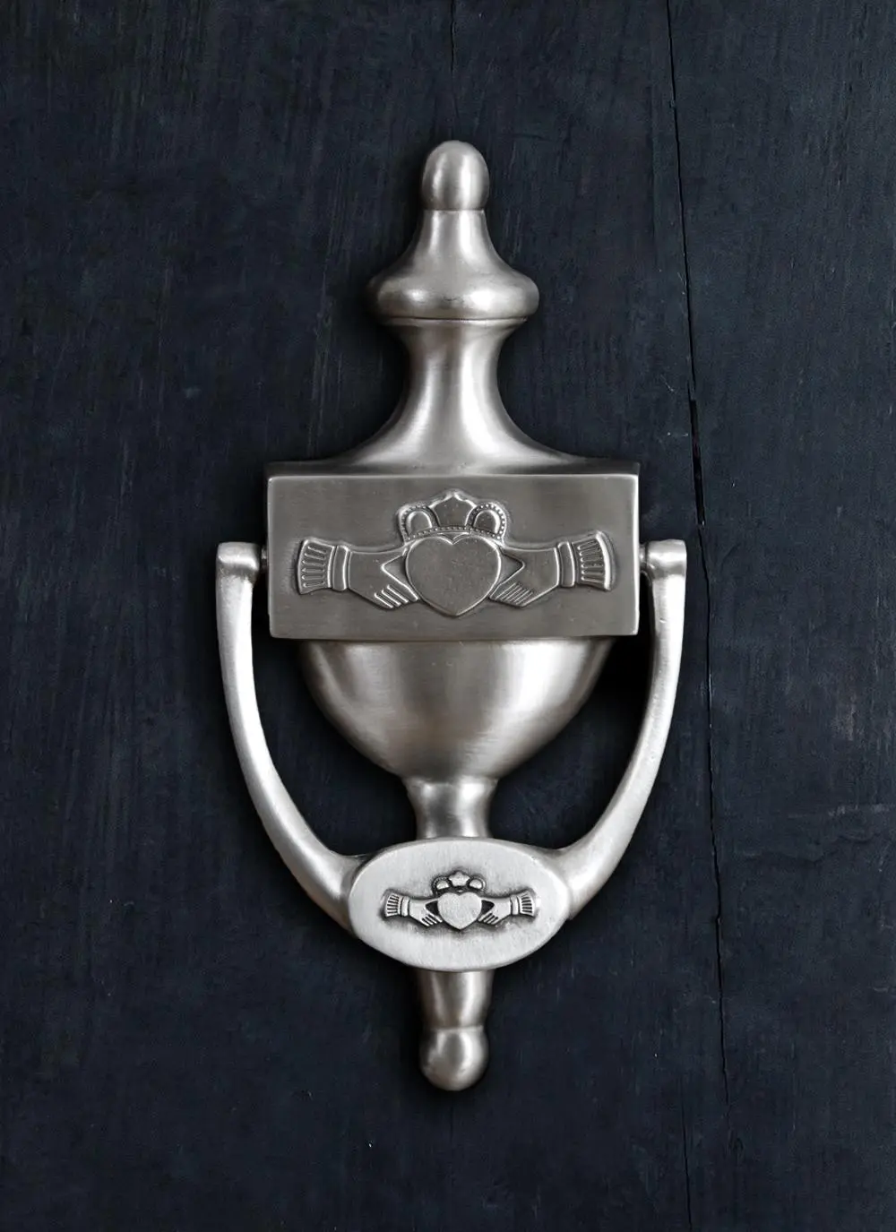 Hand cast in Ireland by Mullingar Pewter. The Claddagh Door Knocker is the perfect gift for somebody moving into a new home. The Claddagh symbol represents love (the heart), friendship (the hands) and loyalty (the crown). A gift that will last a lifetime.