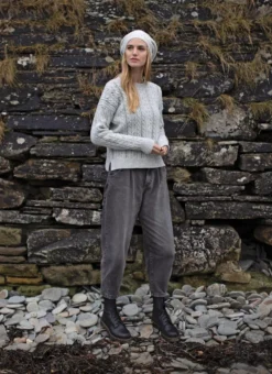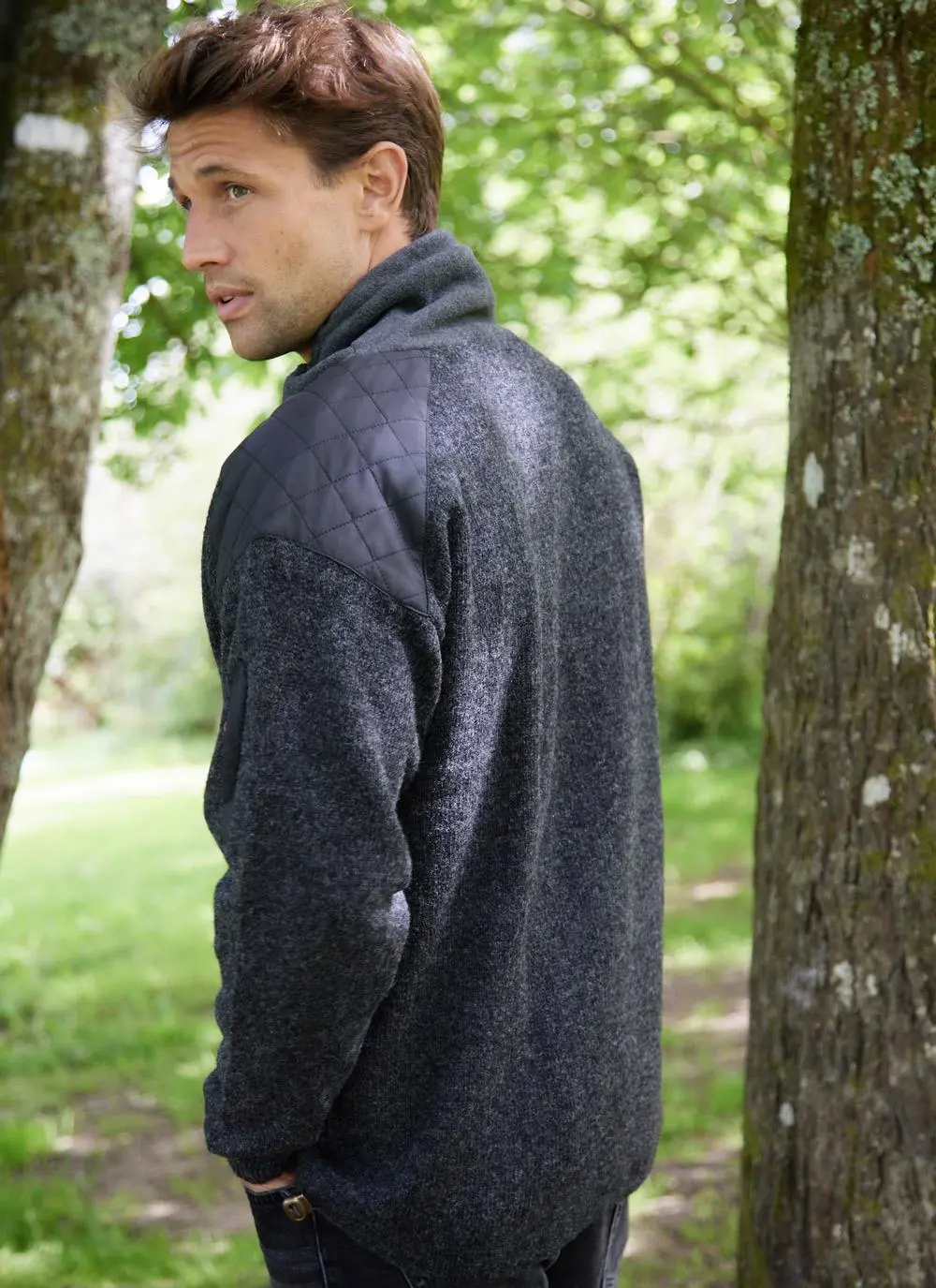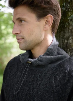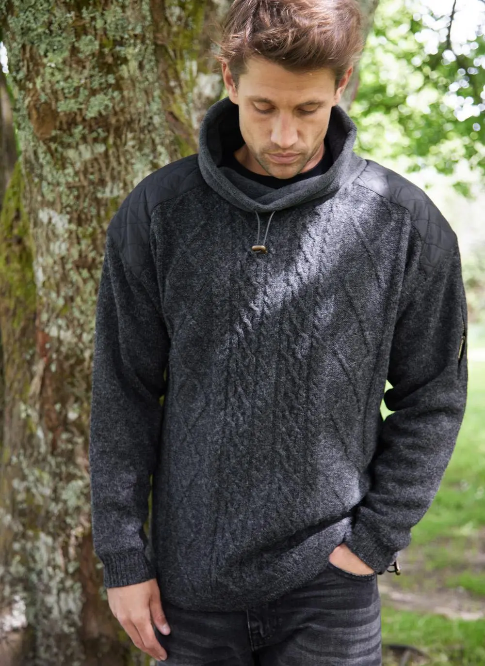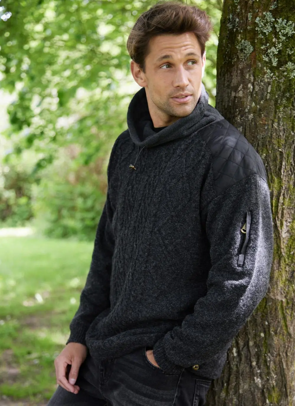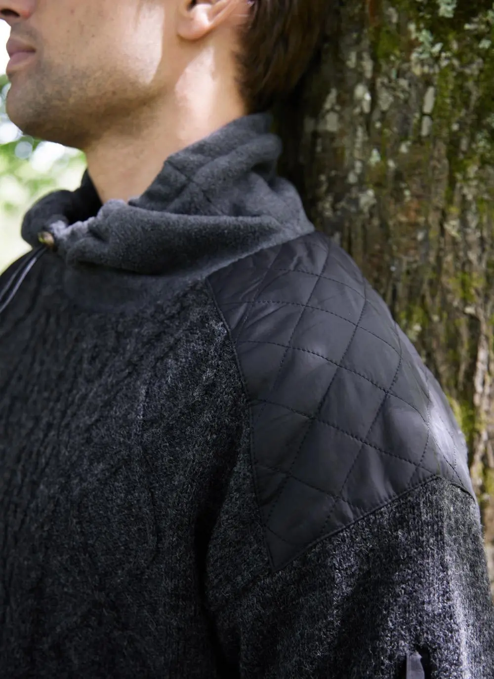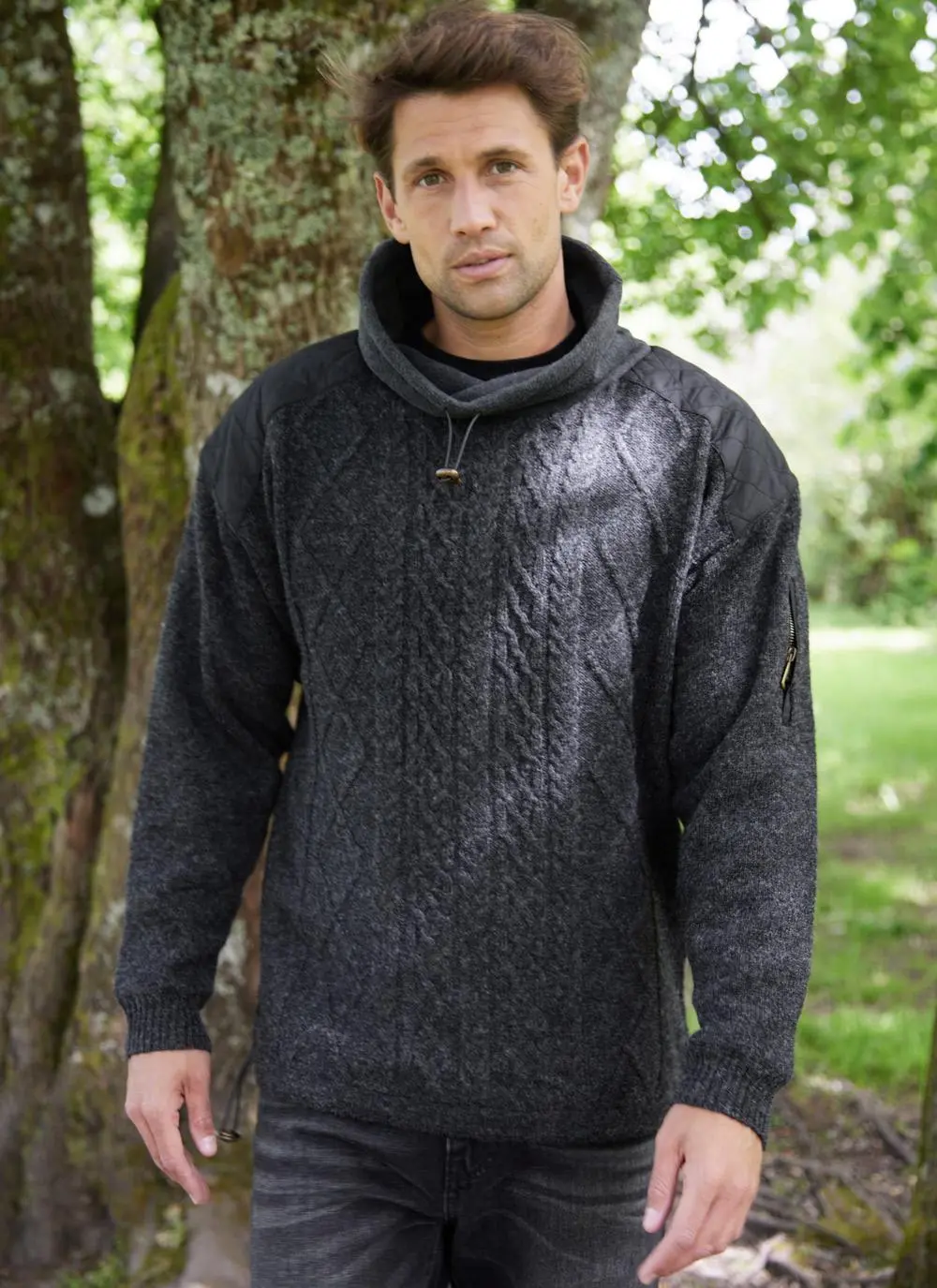 This woolen sweater offers a contemporary take on the classic Aran. Comfy and casual, it features a display of traditional Irish stitches on its front with quilting on the shoulders and ribbed cuffs. The fleece cowl neck feels luxuriously soft to the touch and is fully adjustable for extra snugness.