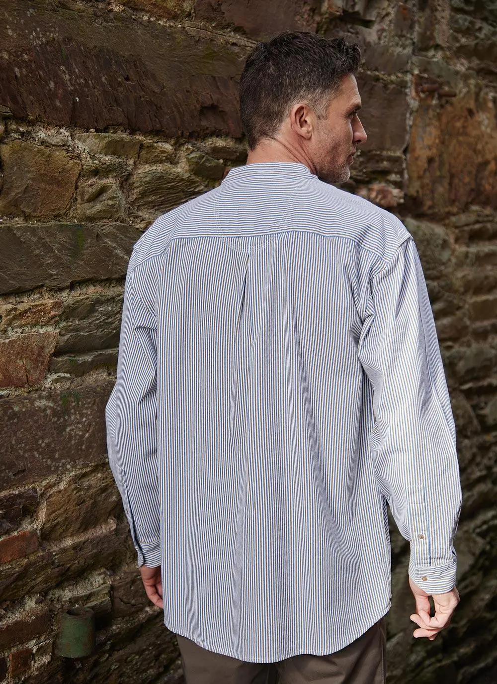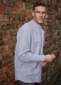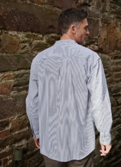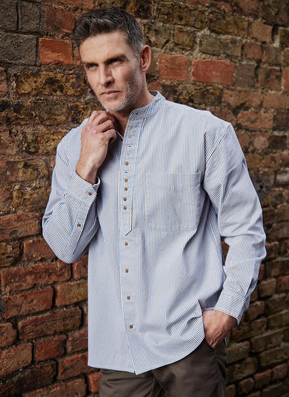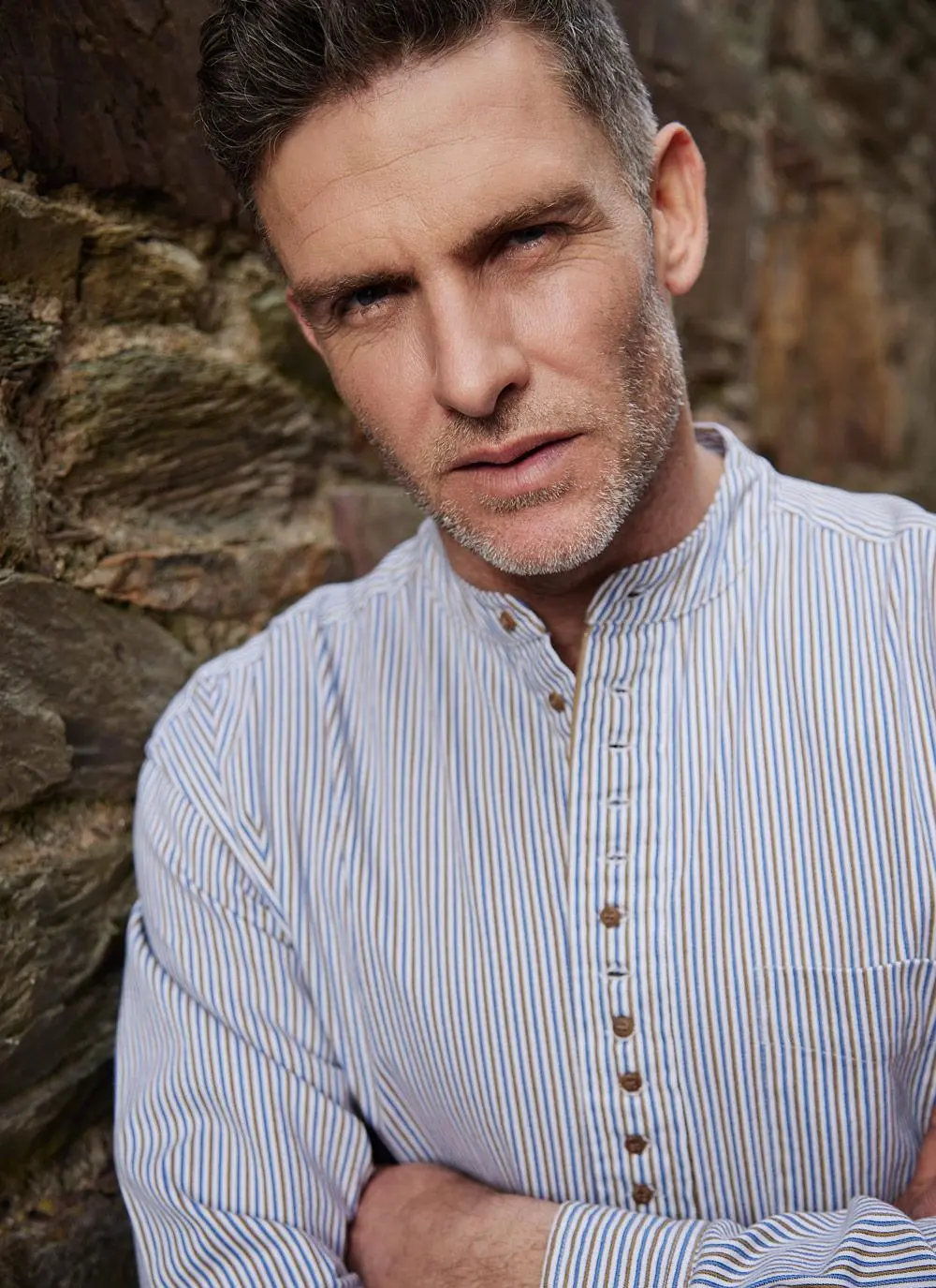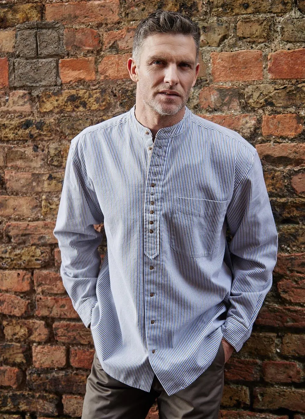 Our Daniel grandfather shirt is both casual and smart, with a classic stripe pattern and collarless neckline. It is beautifully woven in 100% cotton for a soft and comforting handle that won’t weigh you down. A relaxed fit allows for layering and ease of movement.