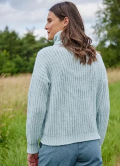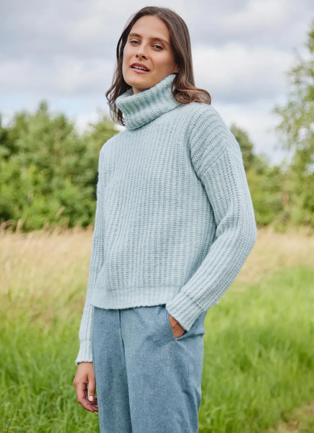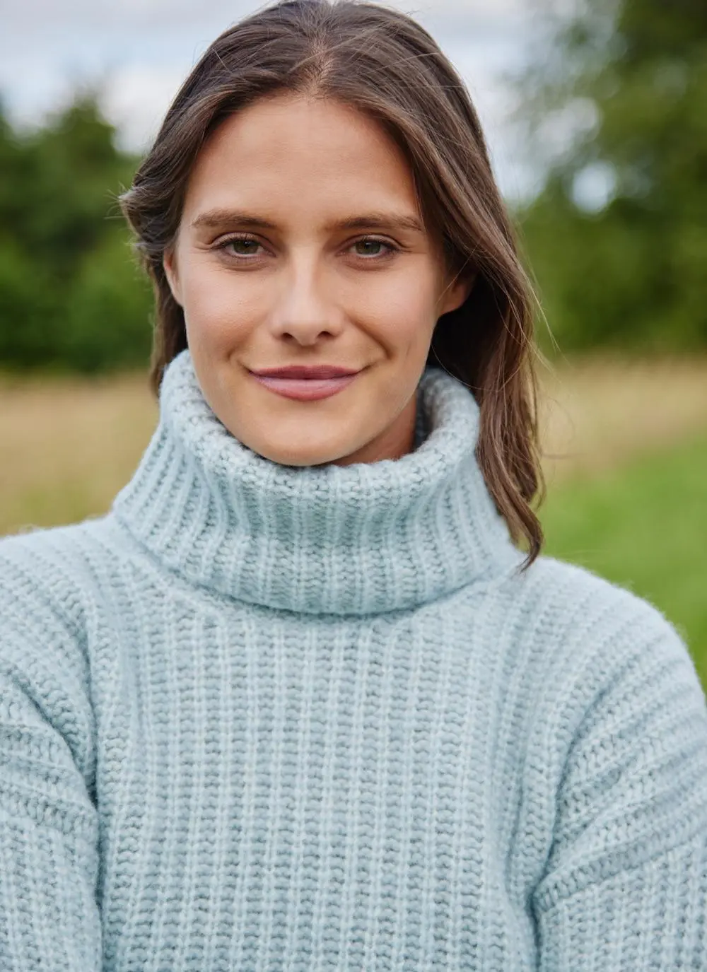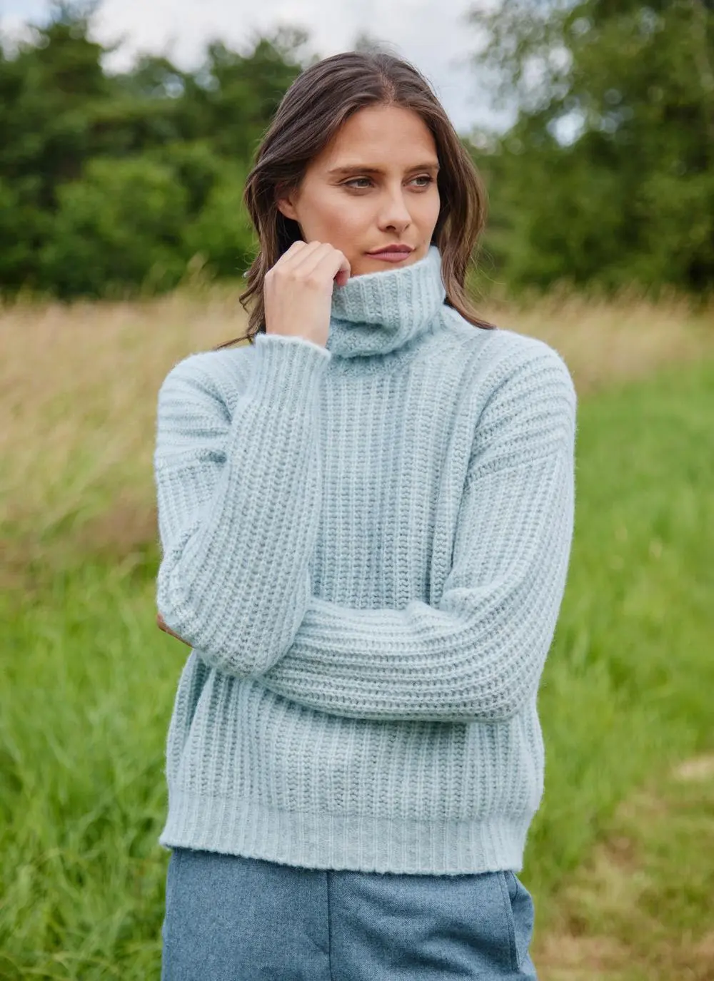 Offering a contemporary take on the classic polo neck, this sweater allows you to wear the neck scrunched up or folded down. Made in Ireland from a luxurious alpaca wool blend, this sweater is super soft and a pleasure to wear. The oversized, boxy shape makes it ideal for everyday comfort.Â