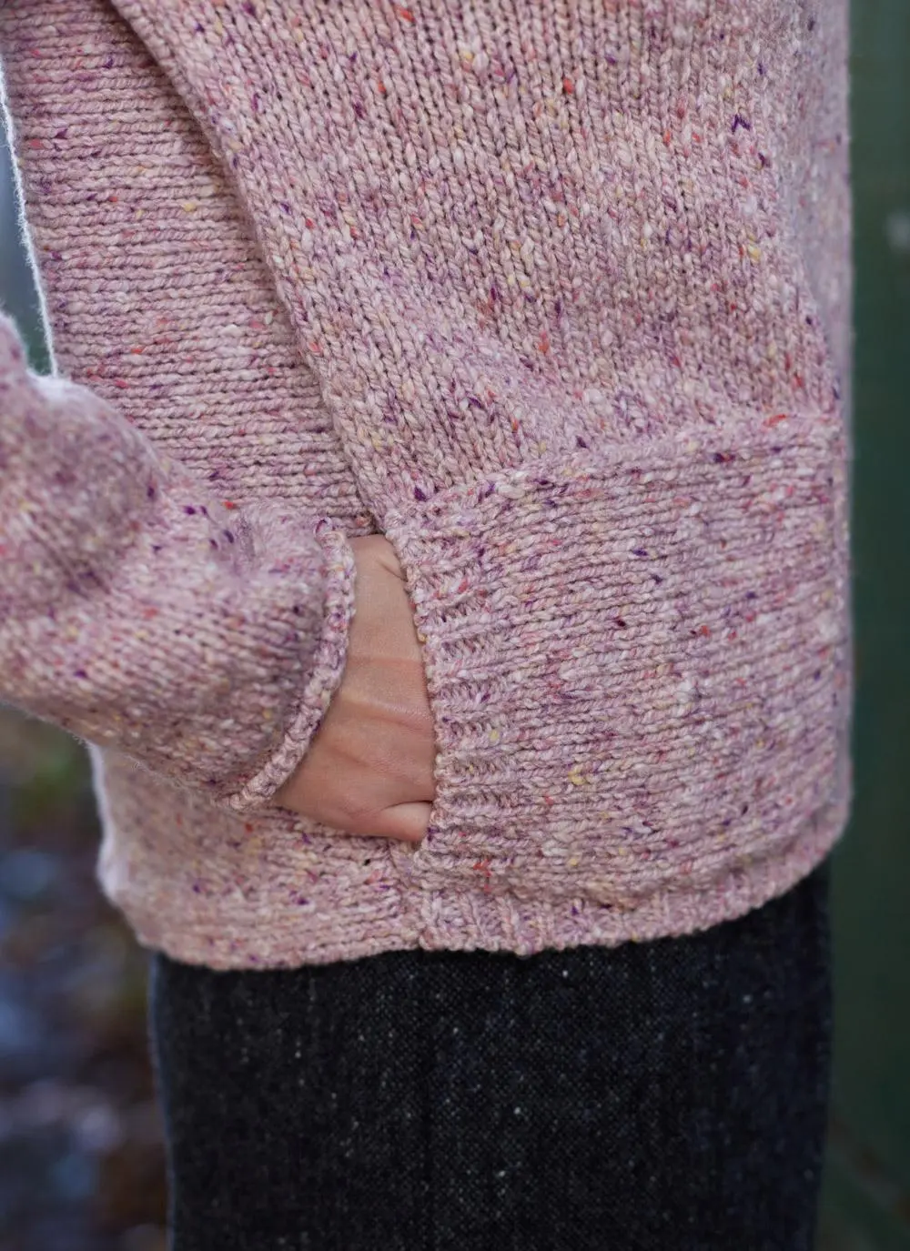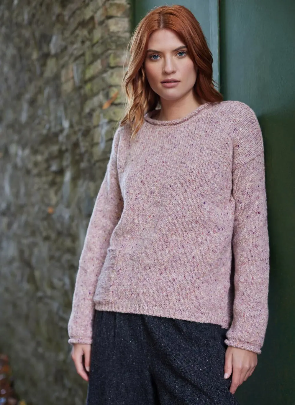 Understated yet distinctive, this sweater by Fisherman Out of Ireland is a casual knitwear staple. It is sustainably knit in Ireland using mulesing-free, Donegal fleck Merino wool. Contemporary accents include one side pocket, a dipped hem and rolling on the neck and cuffs.