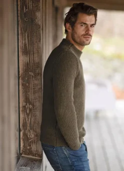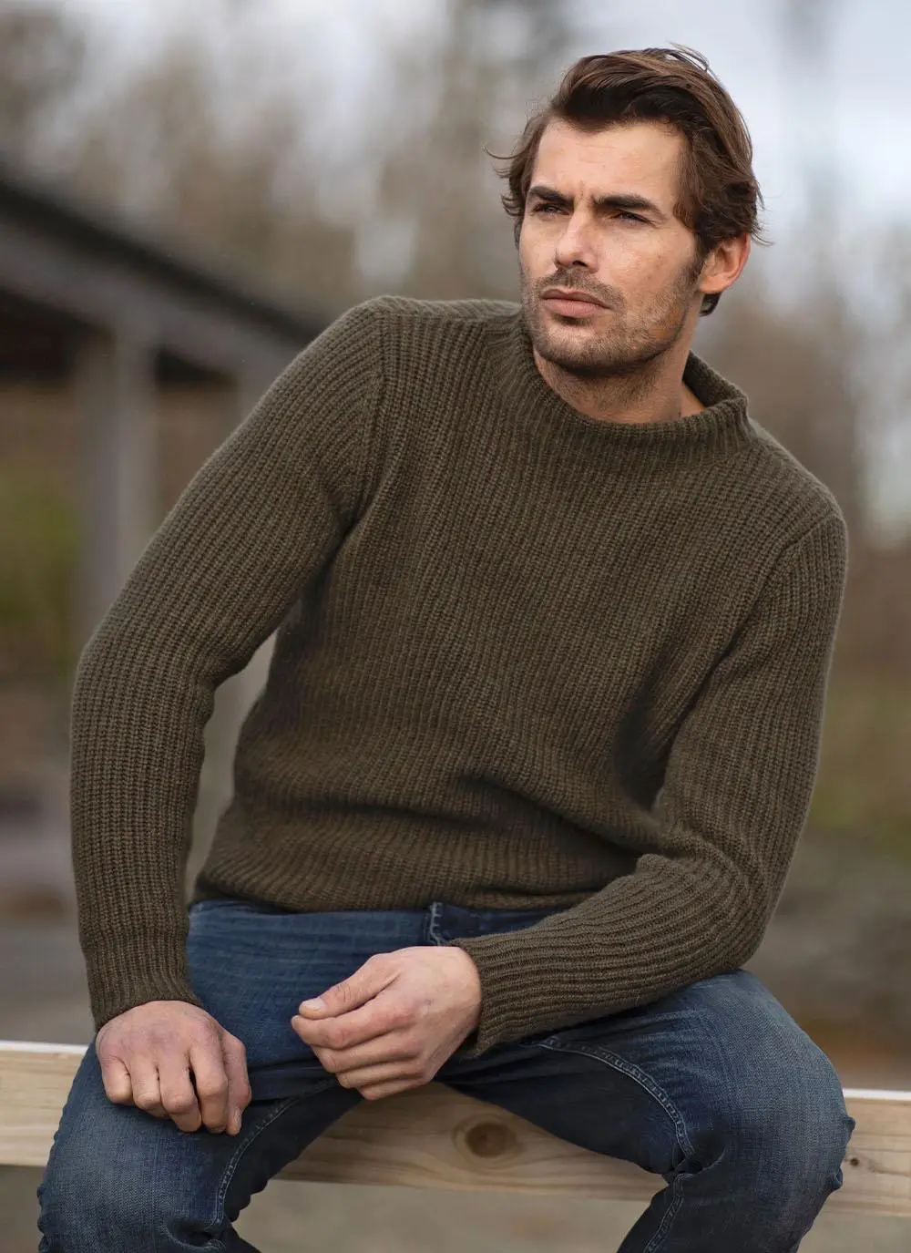 This ribbed sweater by Fisherman out of Ireland is effortlessly sophisticated. A contemporary take on a classic, it features a double layer collar which adds warmth and structure. This timeless layer is knit in County Donegal using soft-touch Geelong sustainable lambswool for a luxurious hand feel.