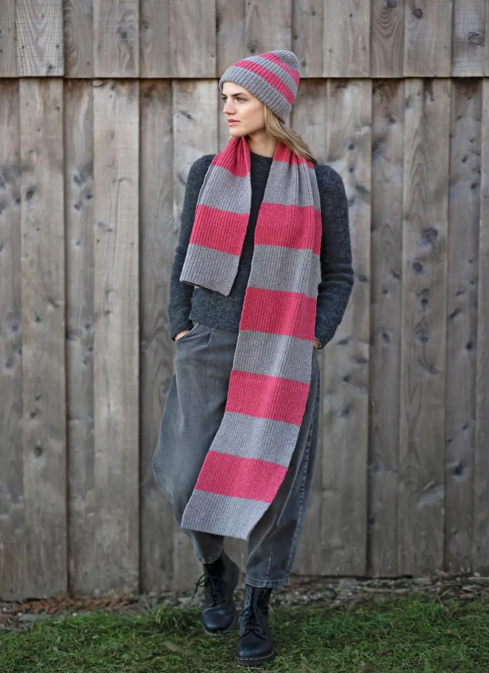 Add warmth and style to your look with this ribbed striped scarf by Fisherman Out of Ireland. It is knit in County Donegal with 100% natural Geelong lambswool for an incredibly soft hand feel.