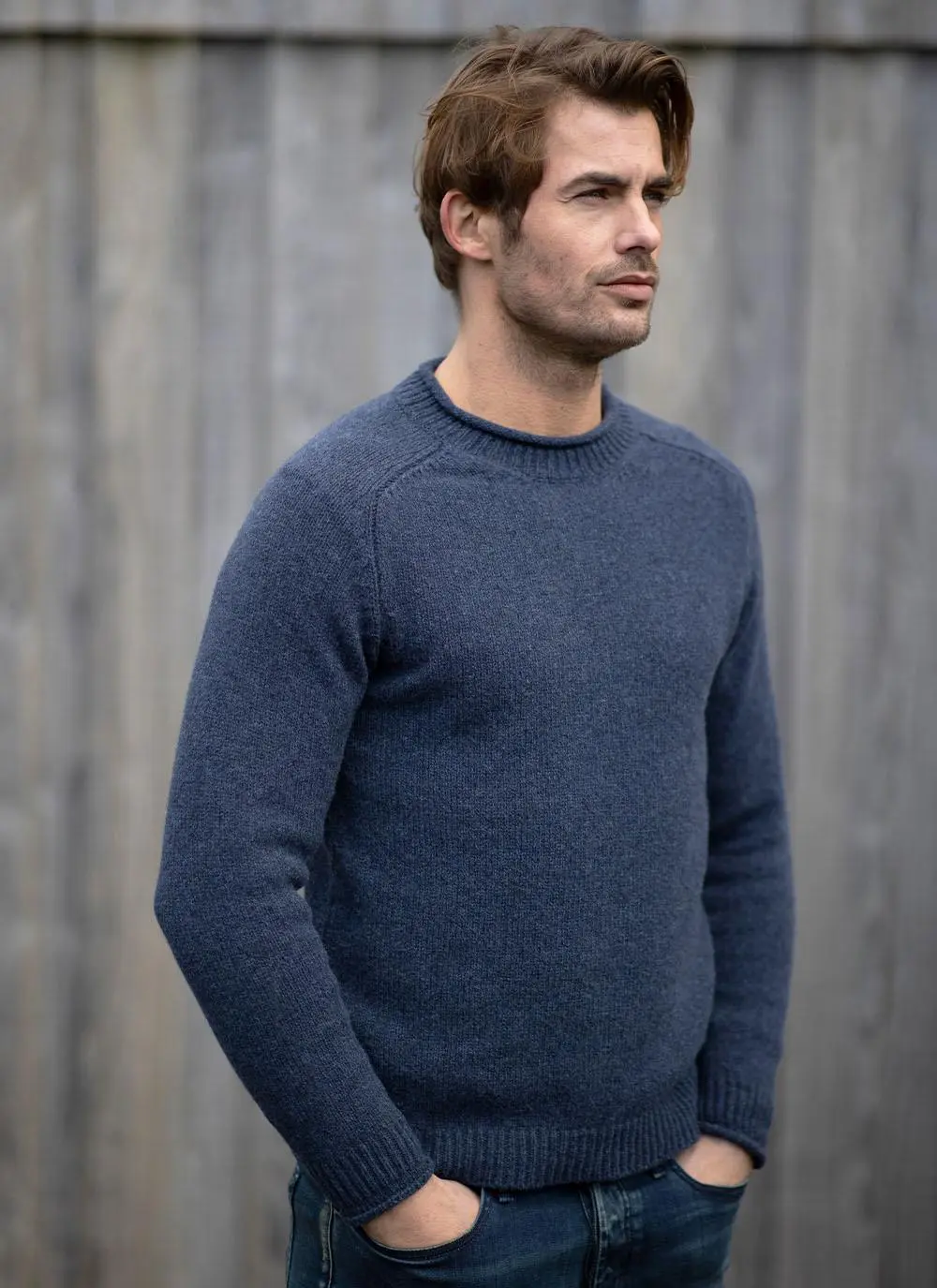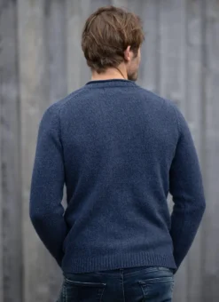 Made in Donegal, this sustainable crew neck sweater is knit in a luxurious blend of cashmere and mulesing-free merino wool. Fisherman Out of Ireland knitwear is all about the detail. This sweater is thoughtfully finished with a saddle shoulder design, rolled hems, ribbed stitching and a marled yarn which has a tonal effect.Â