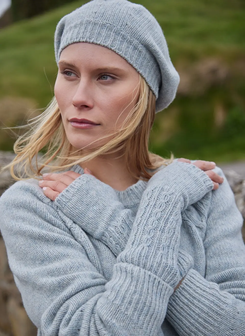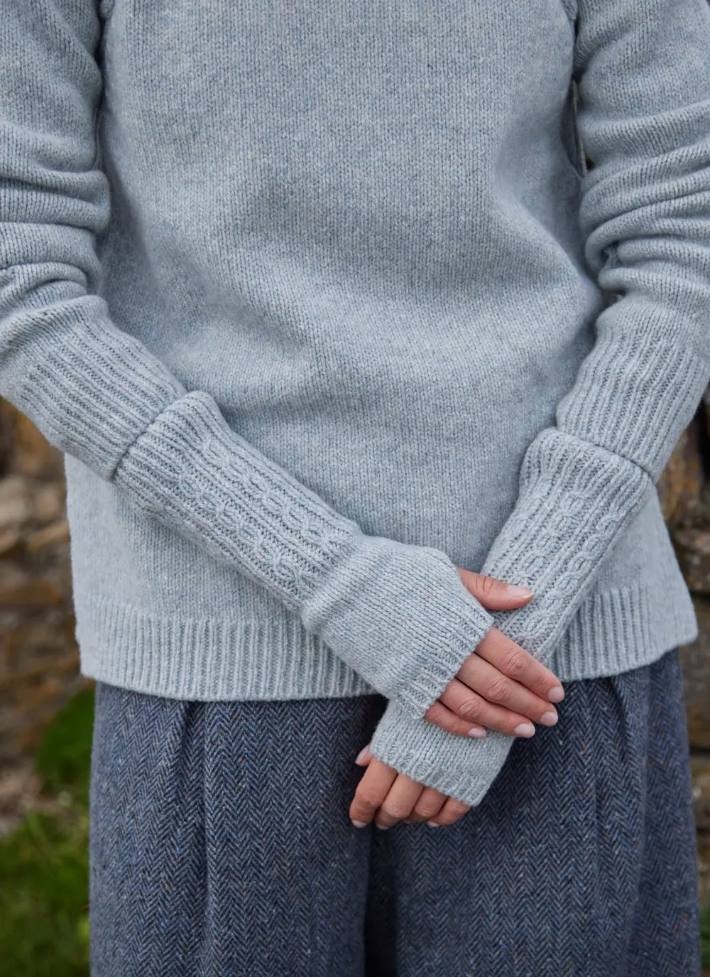 Beautifully knit in a luxuriously soft wool-cashmere blend, the Fisherman Out of Ireland handwarmers are one of our best-selling accessories. Their distinctive design is both practical and elegant, with a generous length and neat fit. Hand-linked and hand-finished in Donegal, they have classic Aran cable stitching throughout for an authentically Irish look and feel.Â