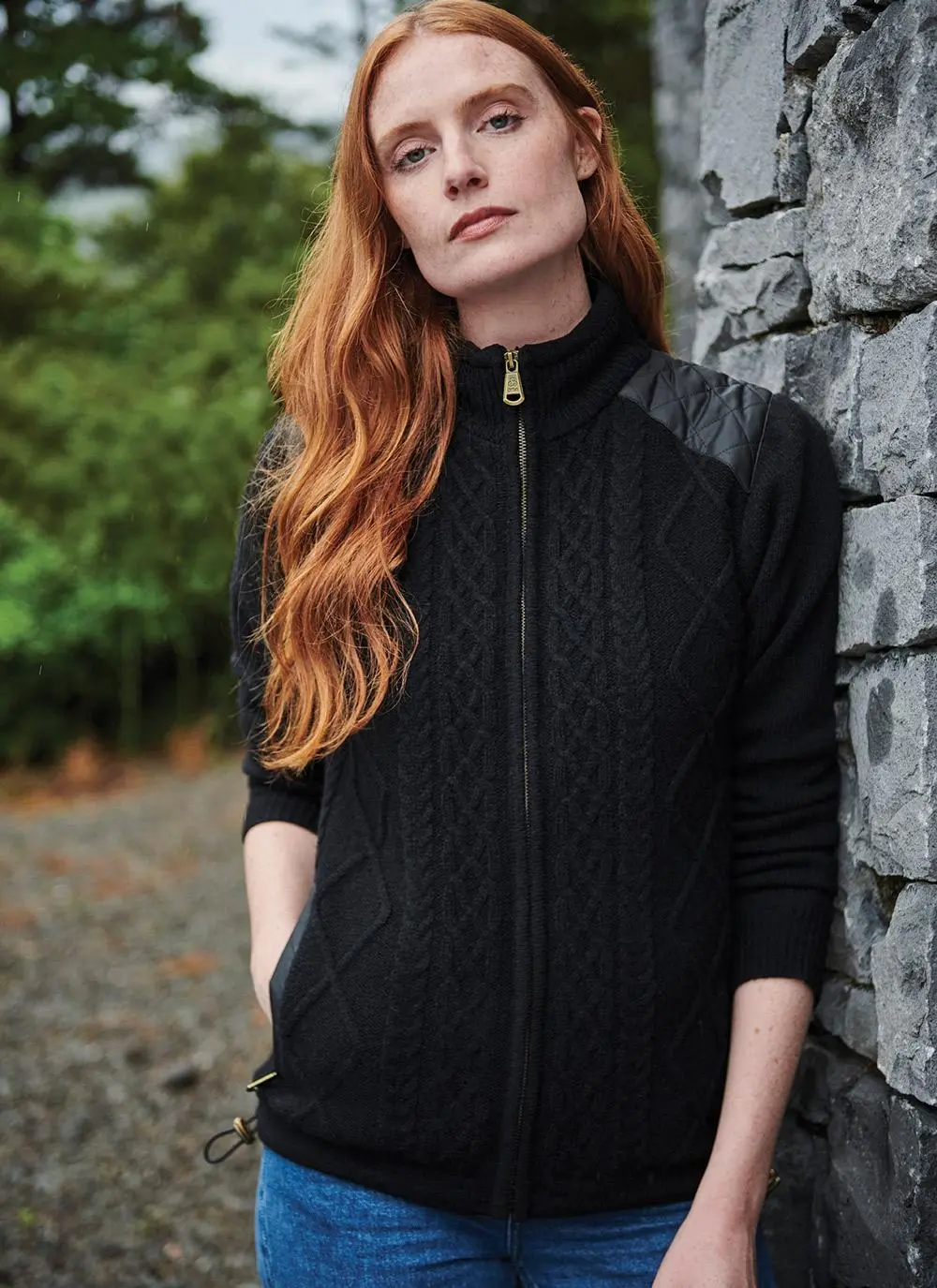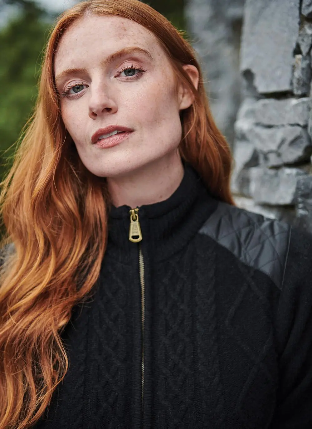 Style meets function with this knit jacket. True to Irish tradition, a beautiful mix of Aran diamond and cable stitches tell a story of our rich knitting history. This zip-up is made with Shetland wool which provides exceptional warmth in cooler temperatures. Thoughtfully finished with adjustable toggles, a high fleece-lined collar and quilting on the shoulders.Â