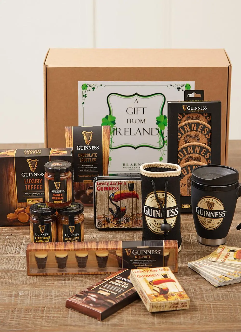The complete gift-boxed Guinness hamper, brimming with Guinness goodies, is the ideal birthday or special occasion gift for those who enjoy a pint or two of the black stuff!Â
