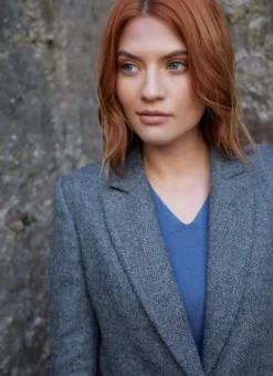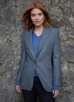 Our Irish tweed blazer is beautifully tailored with a fitted waist for a polished, sophisticated look. The herringbone finish creates a textured, tonal effect that perfectly complements a solid-color base layer. Complete with classic notch lapels, single button closure, subtle shoulder padding and closed front pockets.