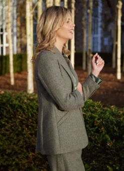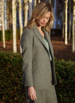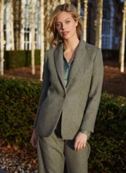 Our Irish tweed blazer is beautifully tailored with a fitted waist for a polished, sophisticated look. The herringbone finish creates a textured, tonal effect that perfectly complements a solid-color base layer. Complete with classic notch lapels, single button closure, subtle shoulder padding and closed front pockets.