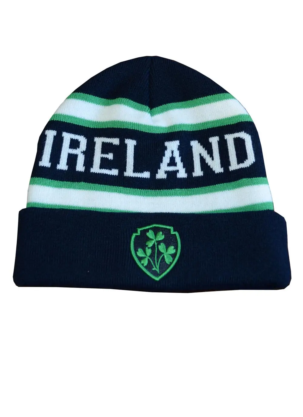 This turn up knit beanie hat features the team crest of the Irish rugby team, the three shamrocks. Suitable for both him and her, it is sure to keep you warm and cozy during excursions or matches. A great Irish gift for all.