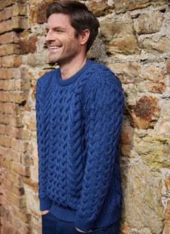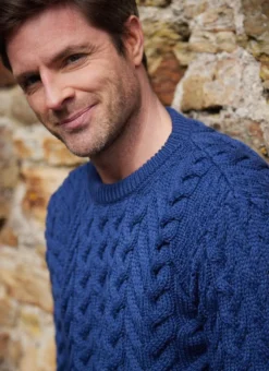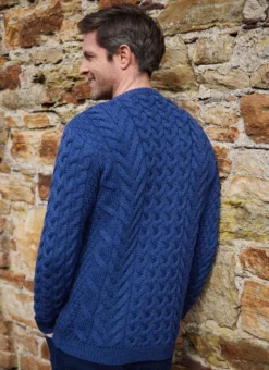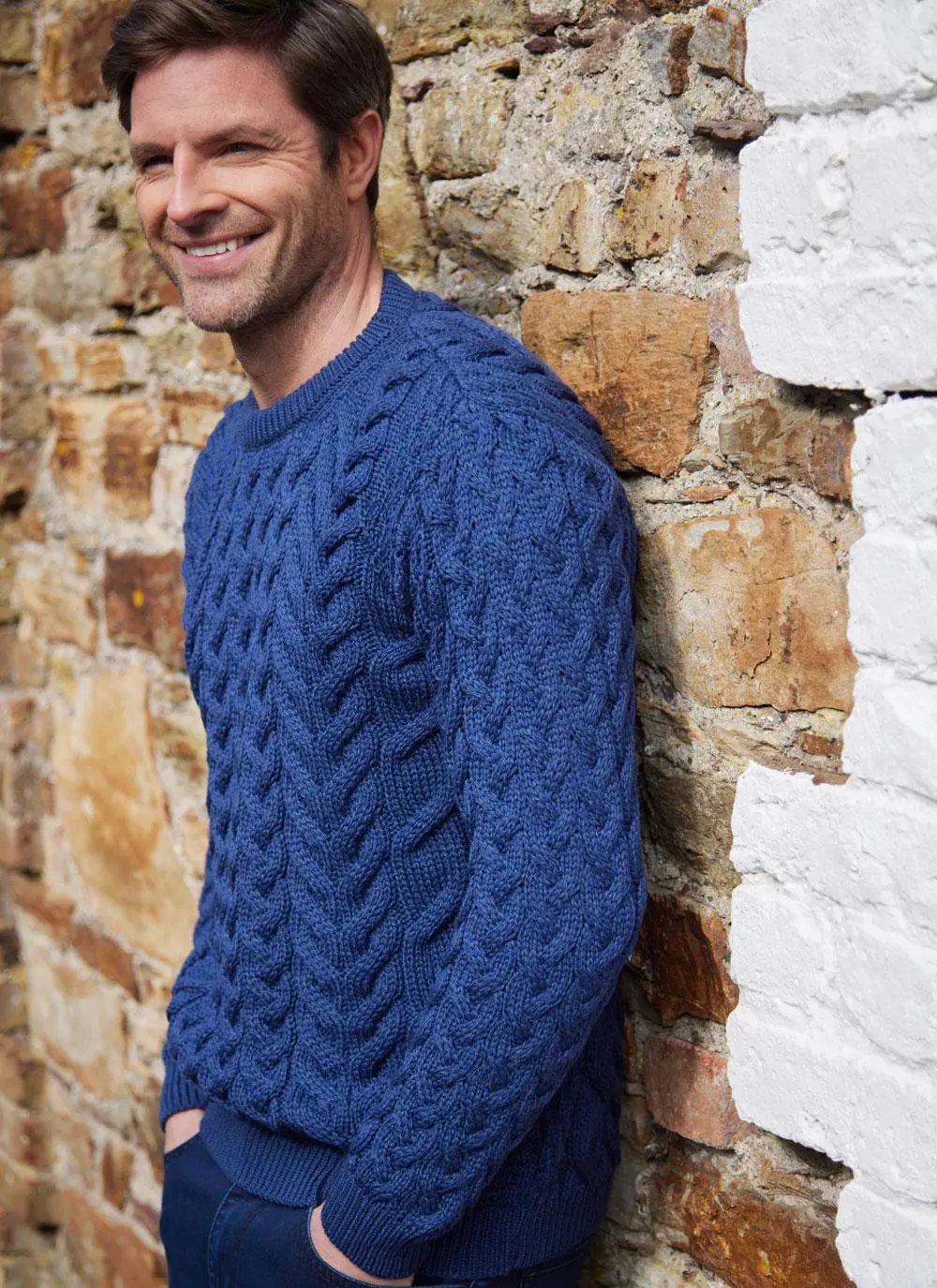 Made in Ireland, this 100% supersoft merino wool Aran sweater has a classic all-over cable design, with a ribbed neck, hem and cuffs. The cable stitch was seen as a symbol of safety and good luck for Irish fishermen in bygone days. That good luck travels with it to this day.