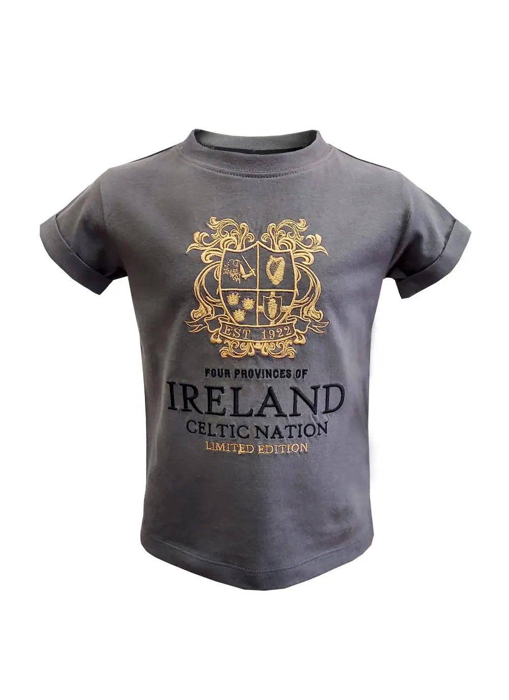 This limited edition casual kids rolled sleeve t-shirt is embroidered with the four provinces of Ireland crest. It also features the year 1922, celebrating the year Ireland became a free state. This is the perfect t-shirt to commemorate ones Irish heritage and culture.