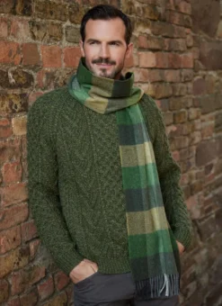 Keep warm in style this winter with our 100% lambswool scarf. Woven in Ireland with extra width in traditional country checks with fringed trim.