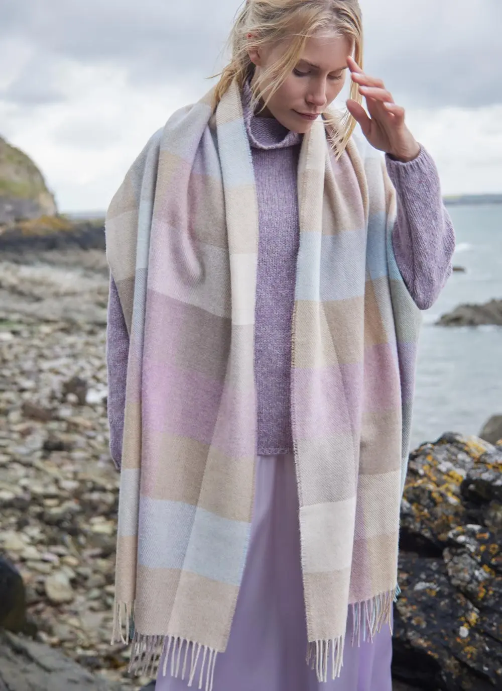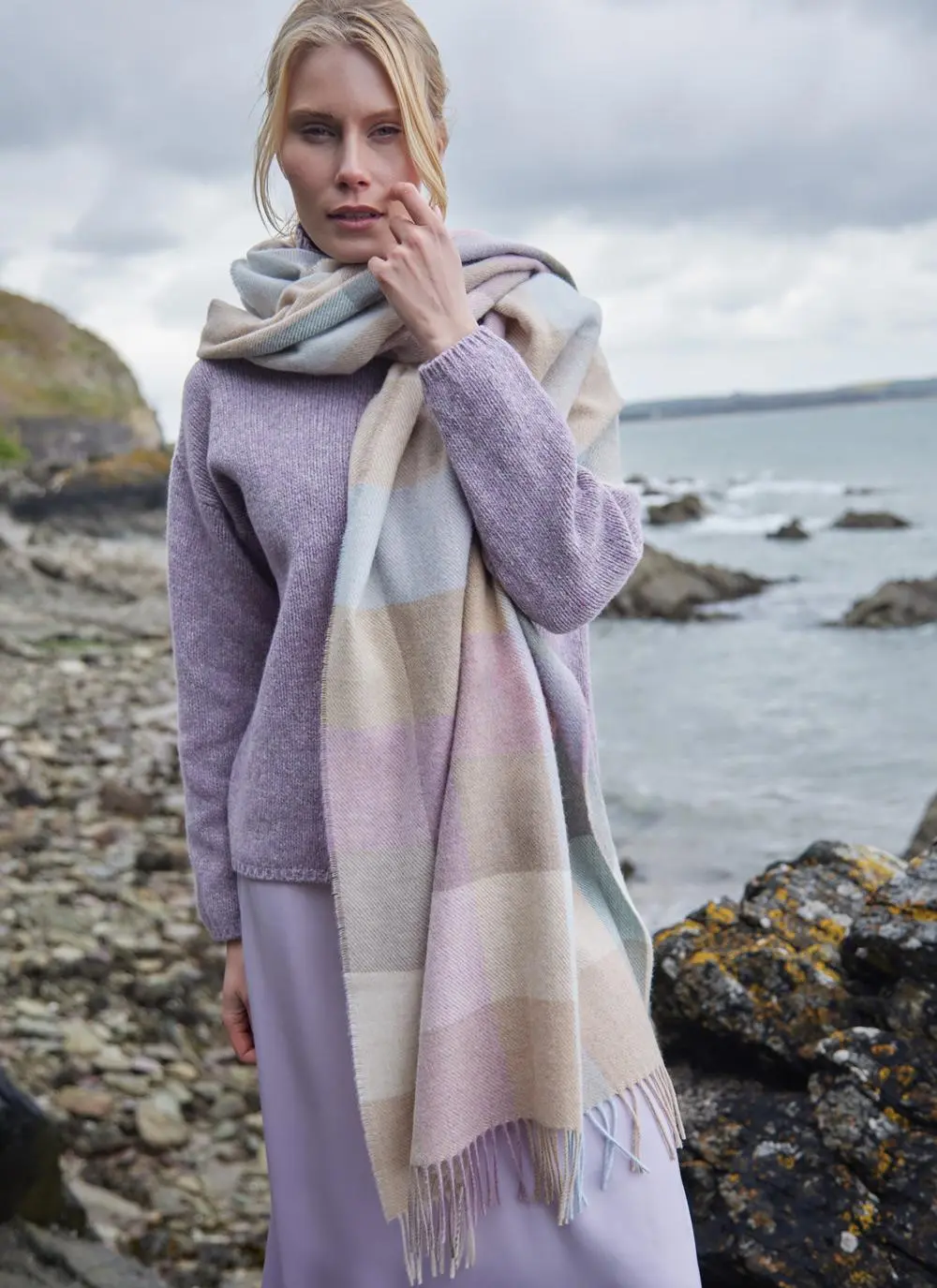 Stay warm, stylish, and cozy with this Lambswool Pashmina Wrap, made in Donegal, Ireland. This wrap is perfect for special occasions or chilly nights out. Let the pastel colors of springtime adorn your look.