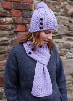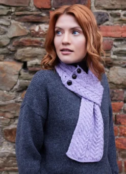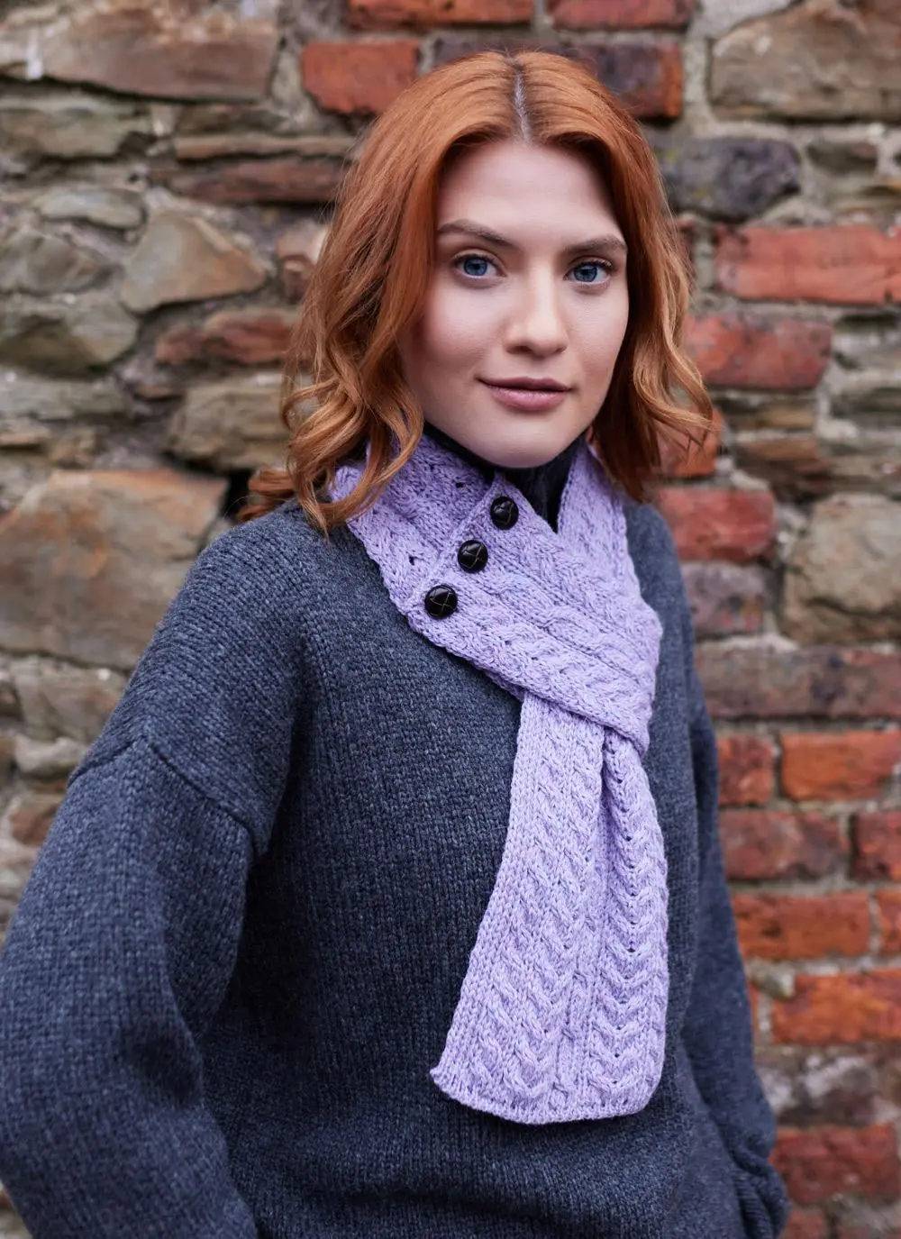 Our Aran Loop Scarf is knit in Ireland with 100% mulesing-free merino wool. It has three leather-look buttons and has traditional Aran cable stitching. Add to any ensemble for effortless styling.