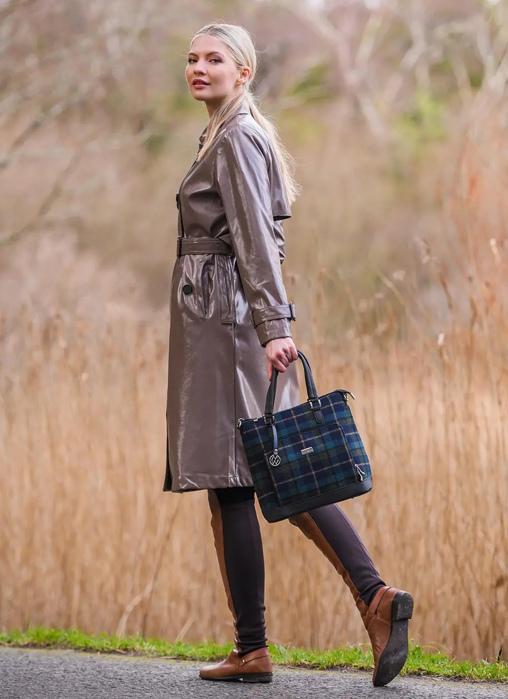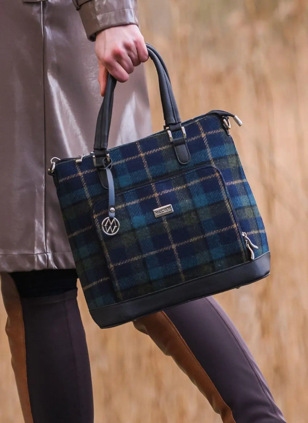 Add a touch of heritage chic to your ensemble with the stylish and functional Ciara bag. Woven in wool tweed with leather trims, it features a classic all-over check pattern. This generously-sized tote is the ideal everyday bag, easily accommodating your daily essentials. Thoughtfully finished with a front zip pocket, leather handles and a detachable leather shoulder strap.