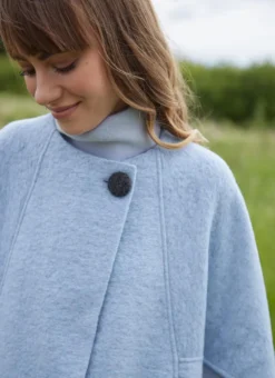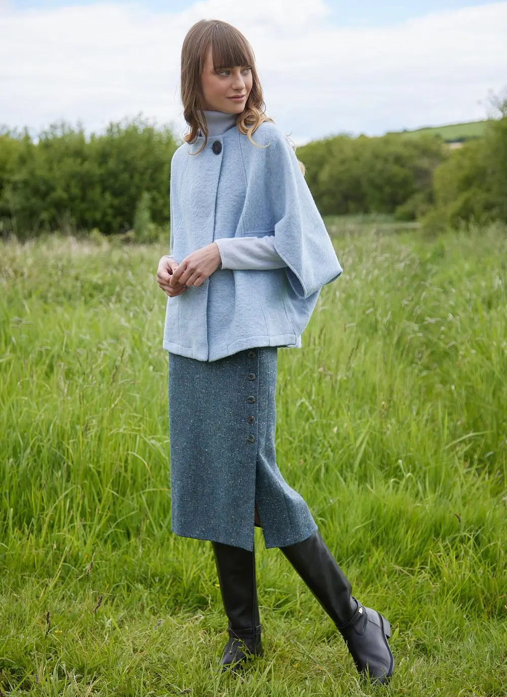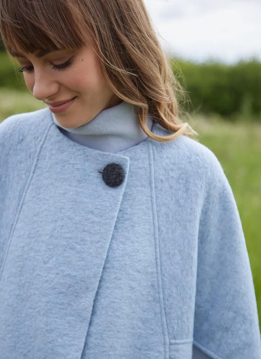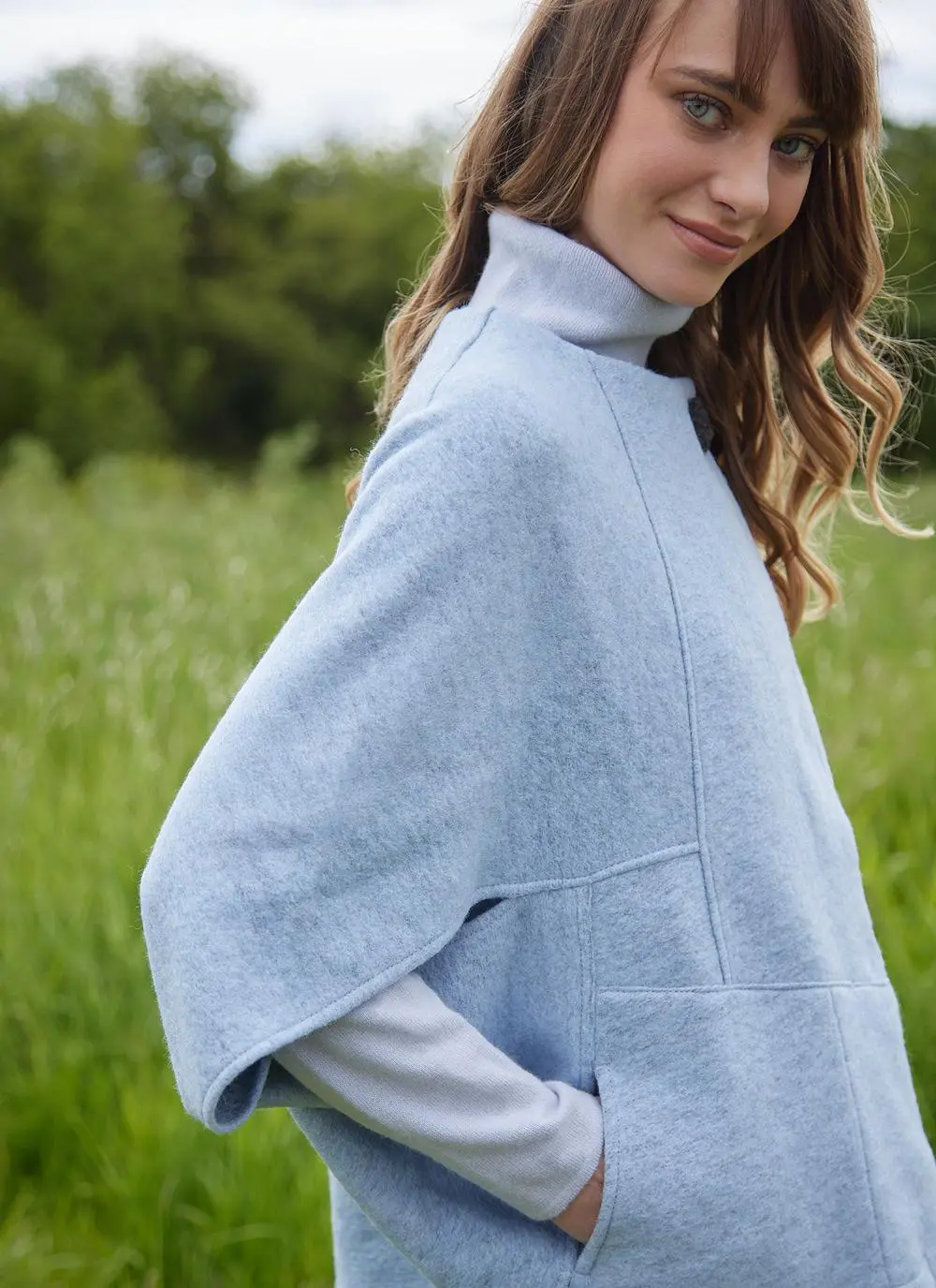 Our Niamh poncho is woven in 100% wool and is shaped in a cocooning silhouette. It has statement cape sleeves, two side pockets and single button closure. Feminine and flattering, timeless and elegant.