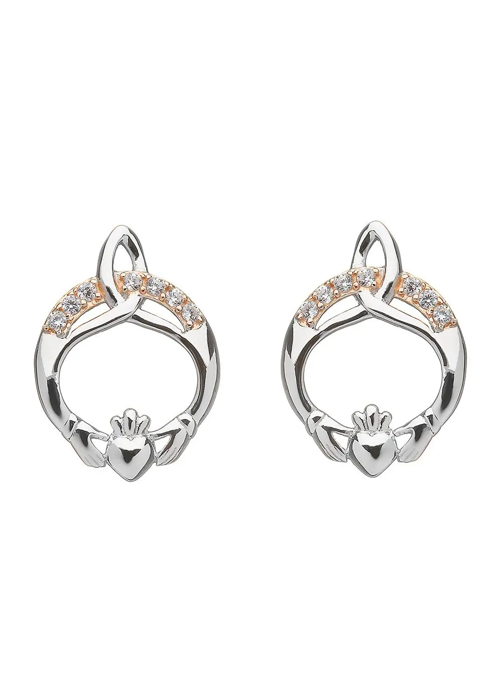 Classic meets contemporary with these elegant earrings by House of Lor, a homegrown jewelry collection inspired by Ireland’s rich tapestry of history, culture, art and design. They feature a stunning Claddagh design of two hands clasping a crowned heart – an iconic symbol of love, loyalty and friendship. We love the rose gold, cubic zirconia-studded embellishment which complements the sterling silver frame beautifully, as well as the delicate trinity knot detail for some extra Celtic magic. A unique gift for a loved one with Irish roots.