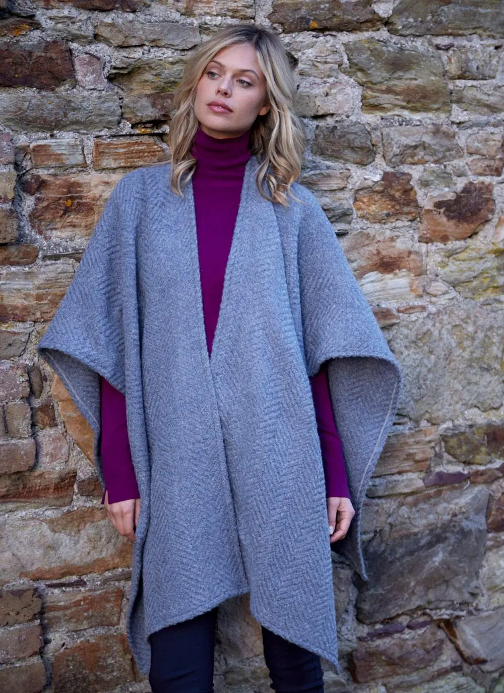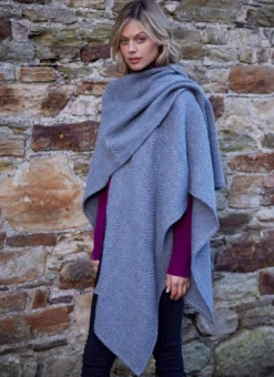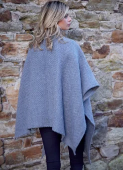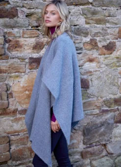 Handwoven in Ireland, this beautiful Ruana cape is easy to wear and effortlessly stylish. Made from a luxurious wool-mohair blend, it can be draped over the shoulders for a casual look, or wrapped around for a more sophisticated look.Â