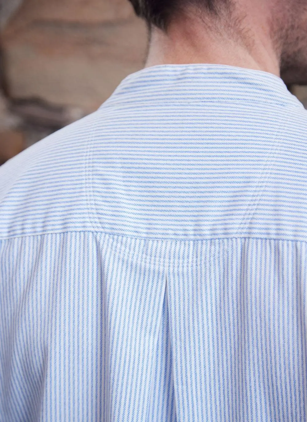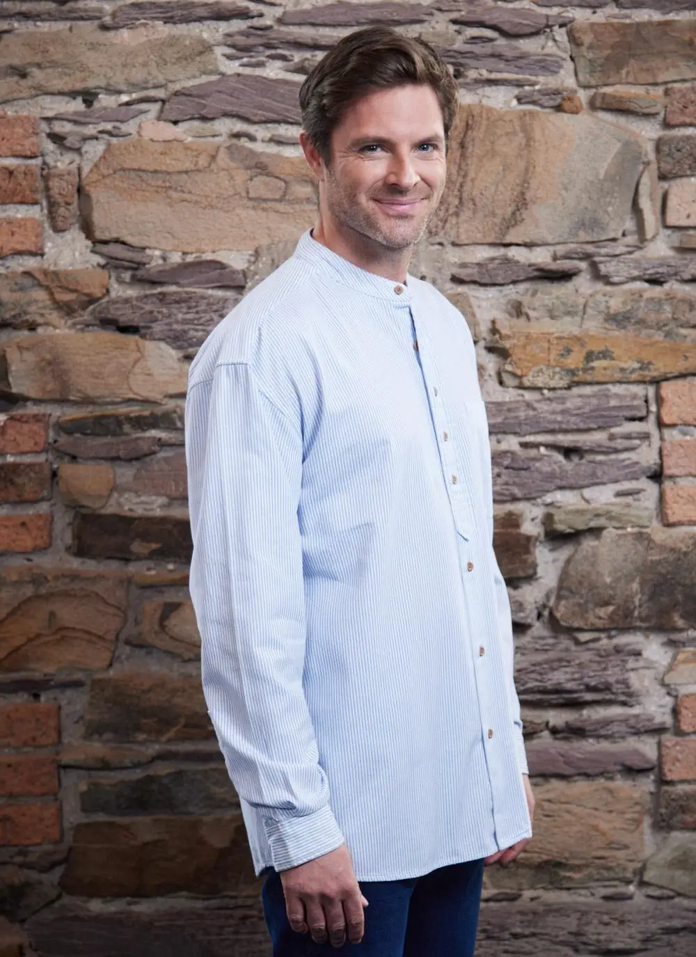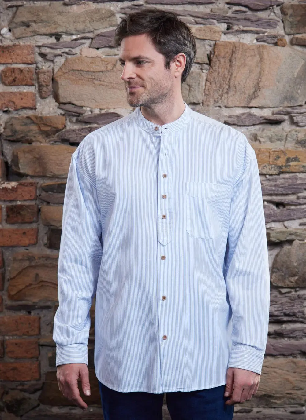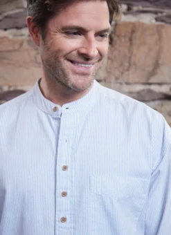 Sammy remains true to the classic Irish grandfather shirt. Designed with comfort in mind, it is made with a superfine combed cotton for a soft hand feel that is a pleasure to wear. While this collarless shirt looks gorgeous worn on its own, it can also be stylishly layered under a sweater or gilet when you need extra warmth.