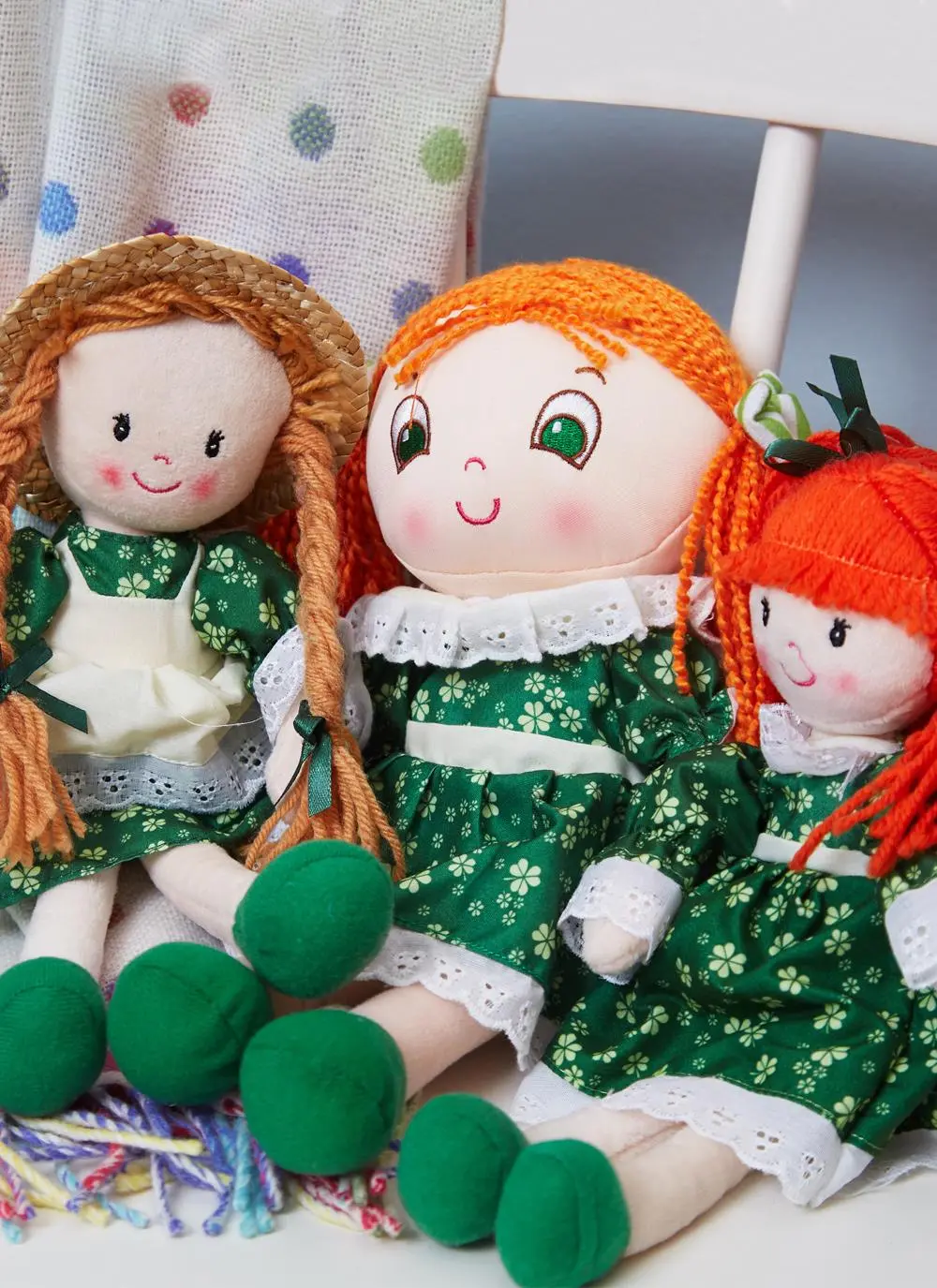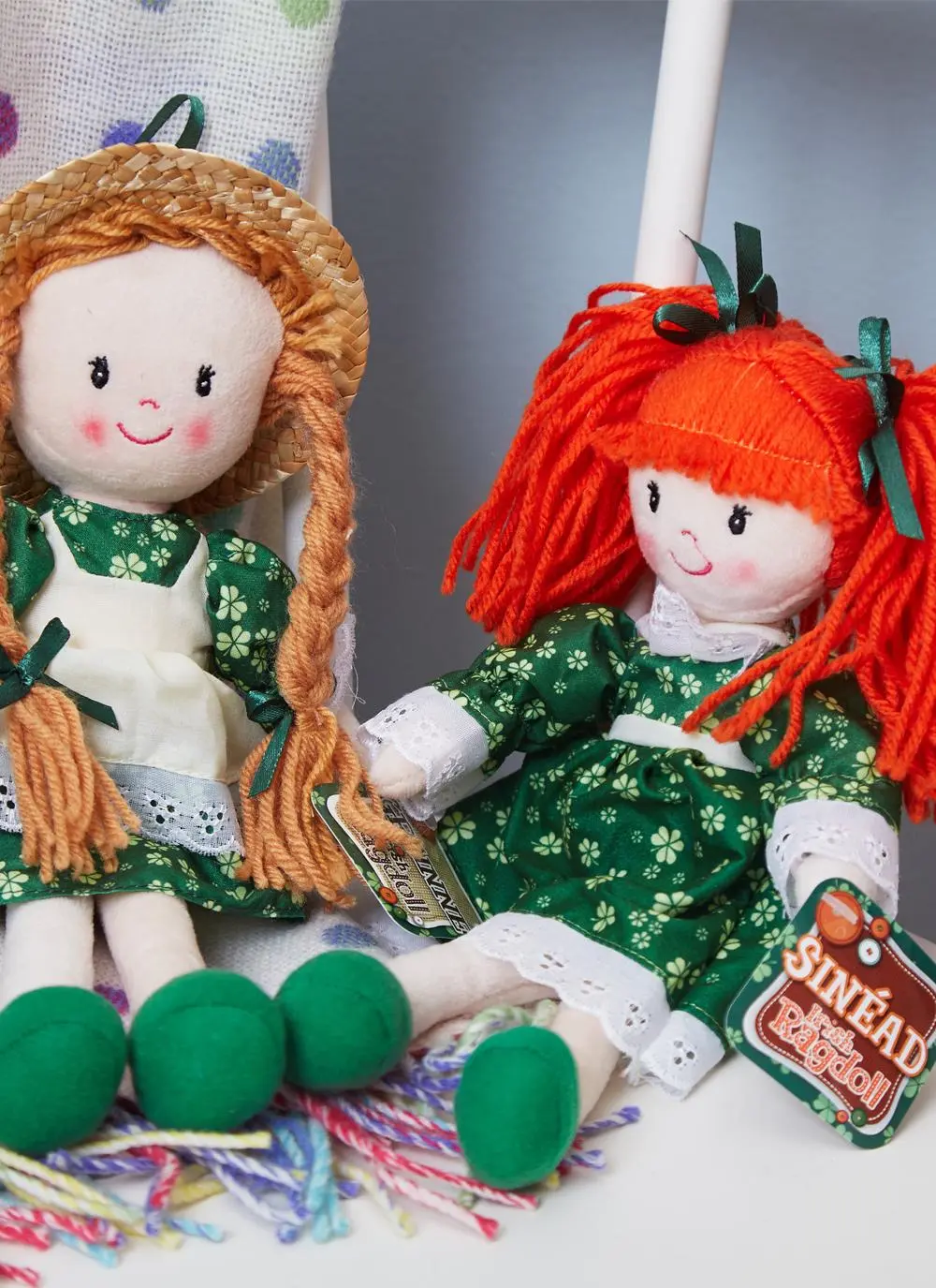 Meet Sinead – your new friend from Ireland! This cute & huggable traditional rag doll is looking for a loving home. Complete with fiery red hair and shamrock dress, Sinead is the perfect companion for children young and old.