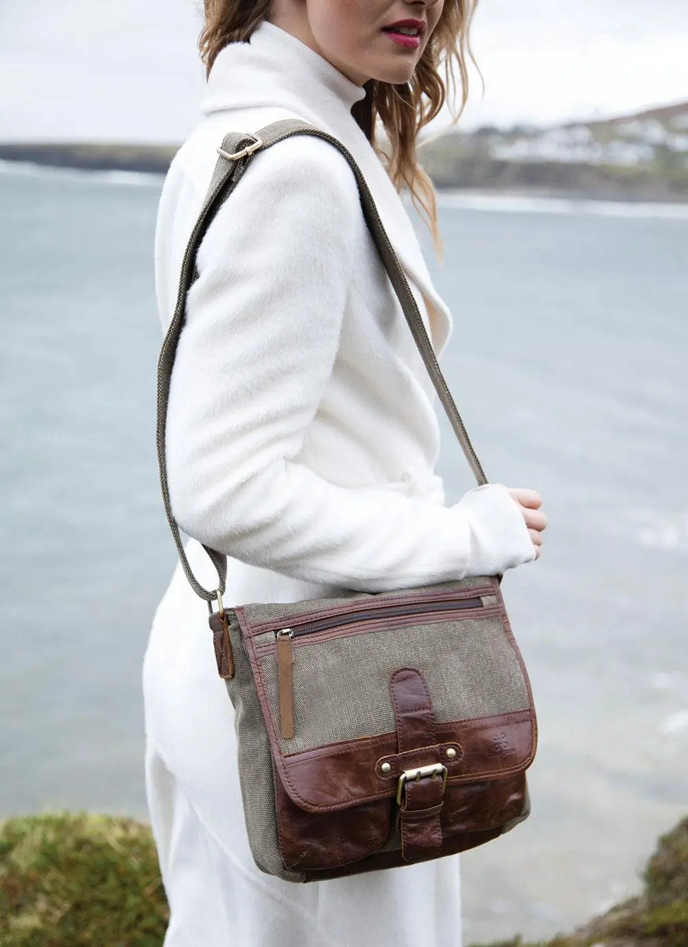 This single buckle bag has been crafted to a high standard of quality and finish in a traditional blend of durable woven tweed with a rich leather trim. It has a decorative front buckle, which conceals a metallic clasp for easy opening, two front pockets, back zipped pocket and a mobile phone pocket. This smart and stylish bag can take you anywhere.