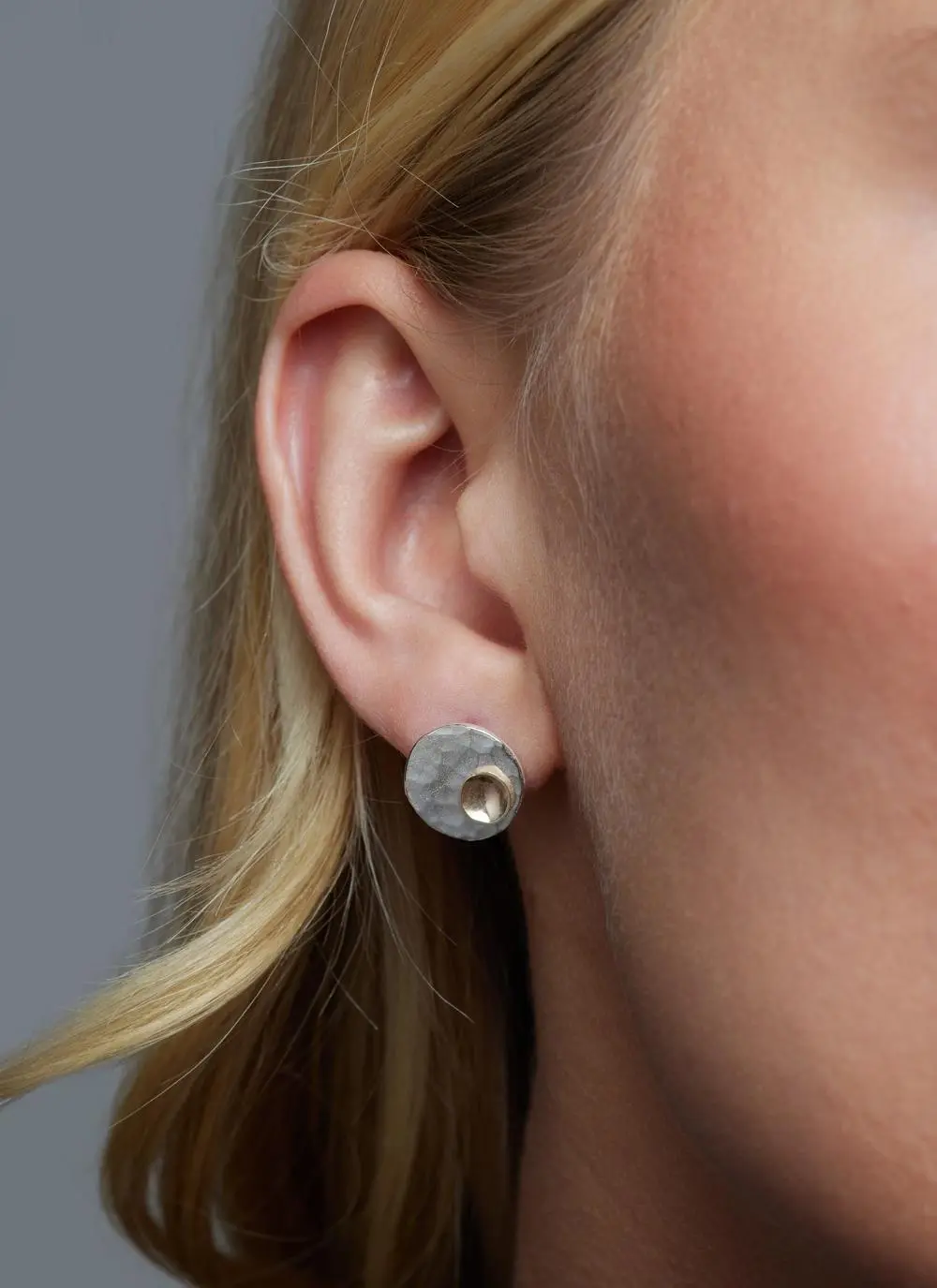 We love the understated elegance of these contemporary earrings by Simon Barber. Their lightly hammered surface reflects the light, producing a shimmering effect like sunshine dancing on water. They are set with a 9 carat gold disc which complements the sterling silver frame beautifully. Like all Simon’s pieces, these are handcrafted in Ireland for an authentic feel and finish.