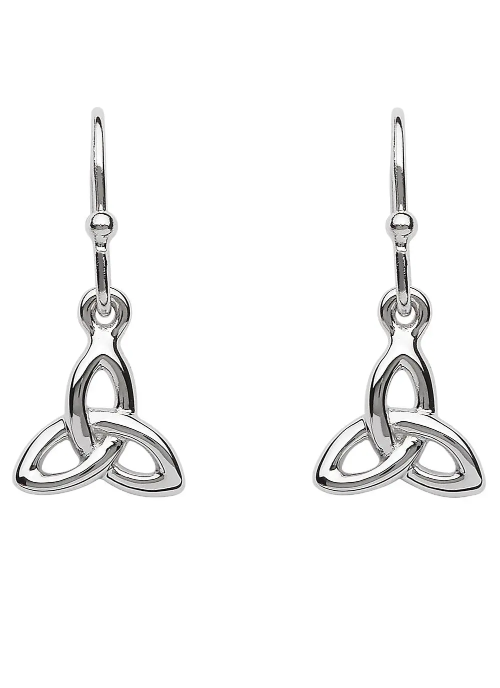 Stand out with these striking sterling silver Celtic Trinity Knot drop earrings which have been crafted in Ireland. Simple but sophisticated, they are a staple fashion piece to complement any outfit.
