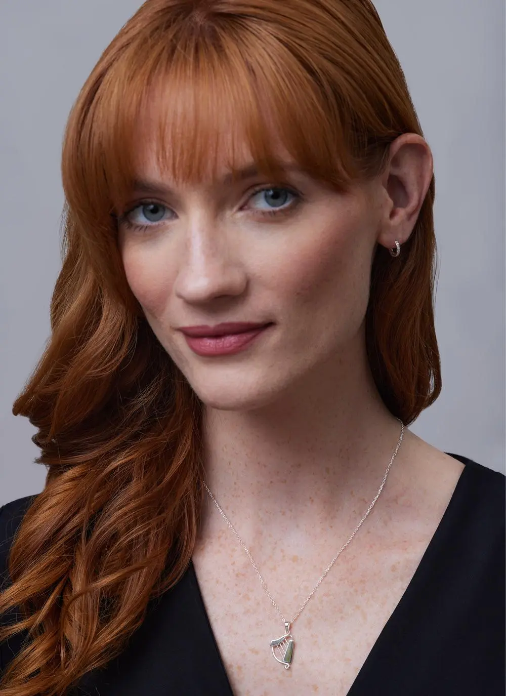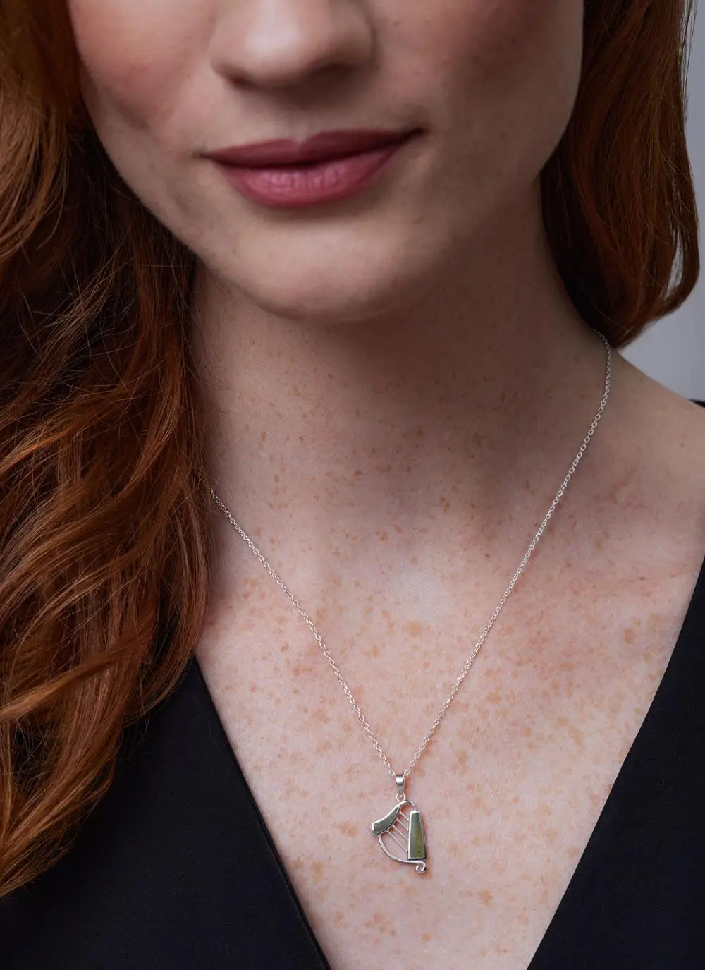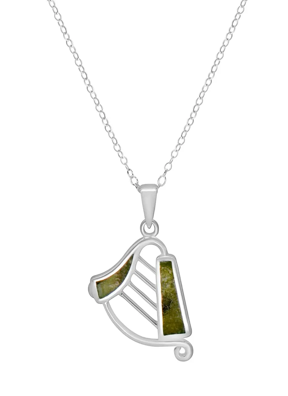 This charming harp pendant has been crafted from Connemara Marble and sterling silver. The Harp is the national symbol of Ireland and features on all official Irish documentation, seals and uniforms.Â